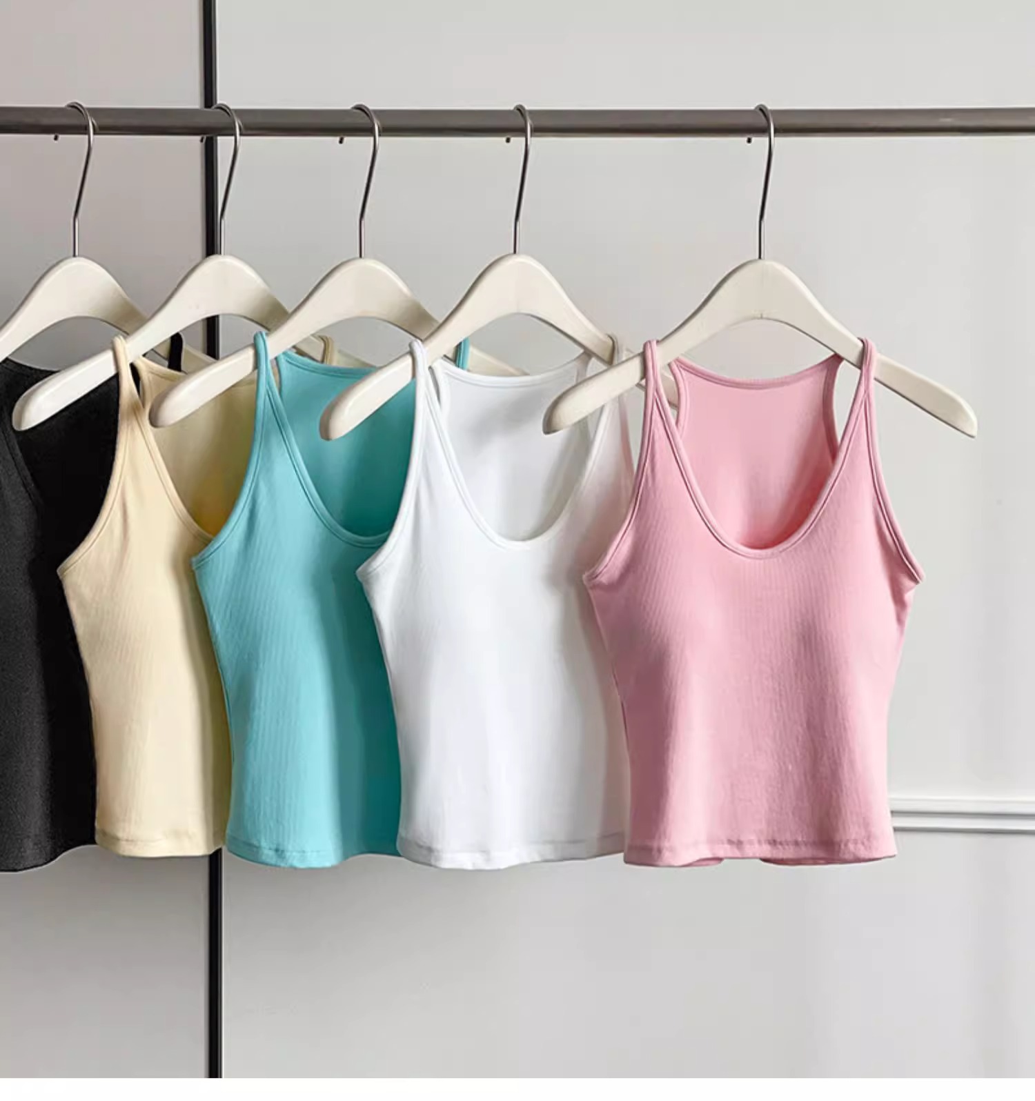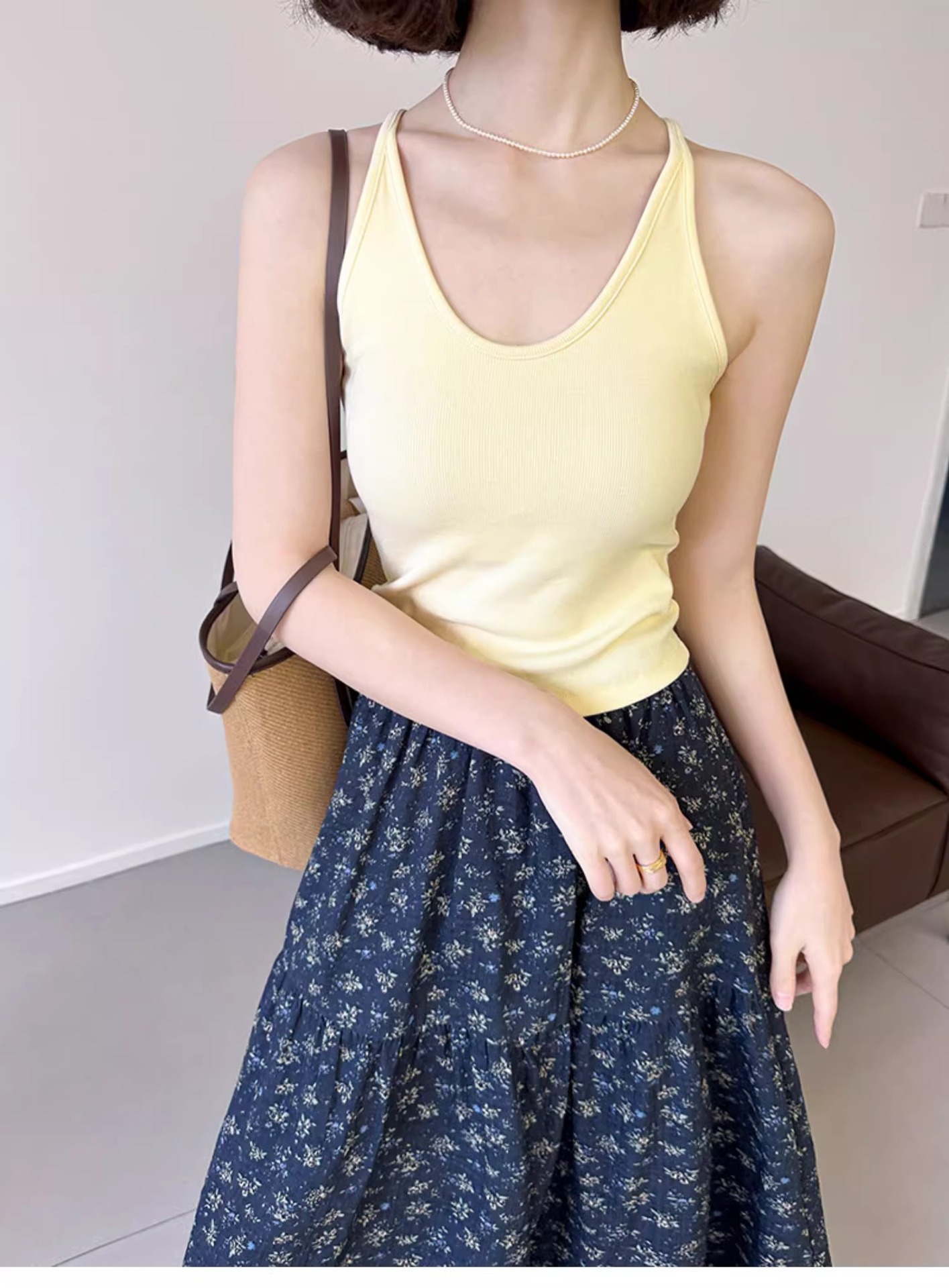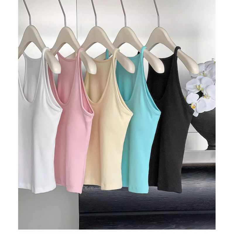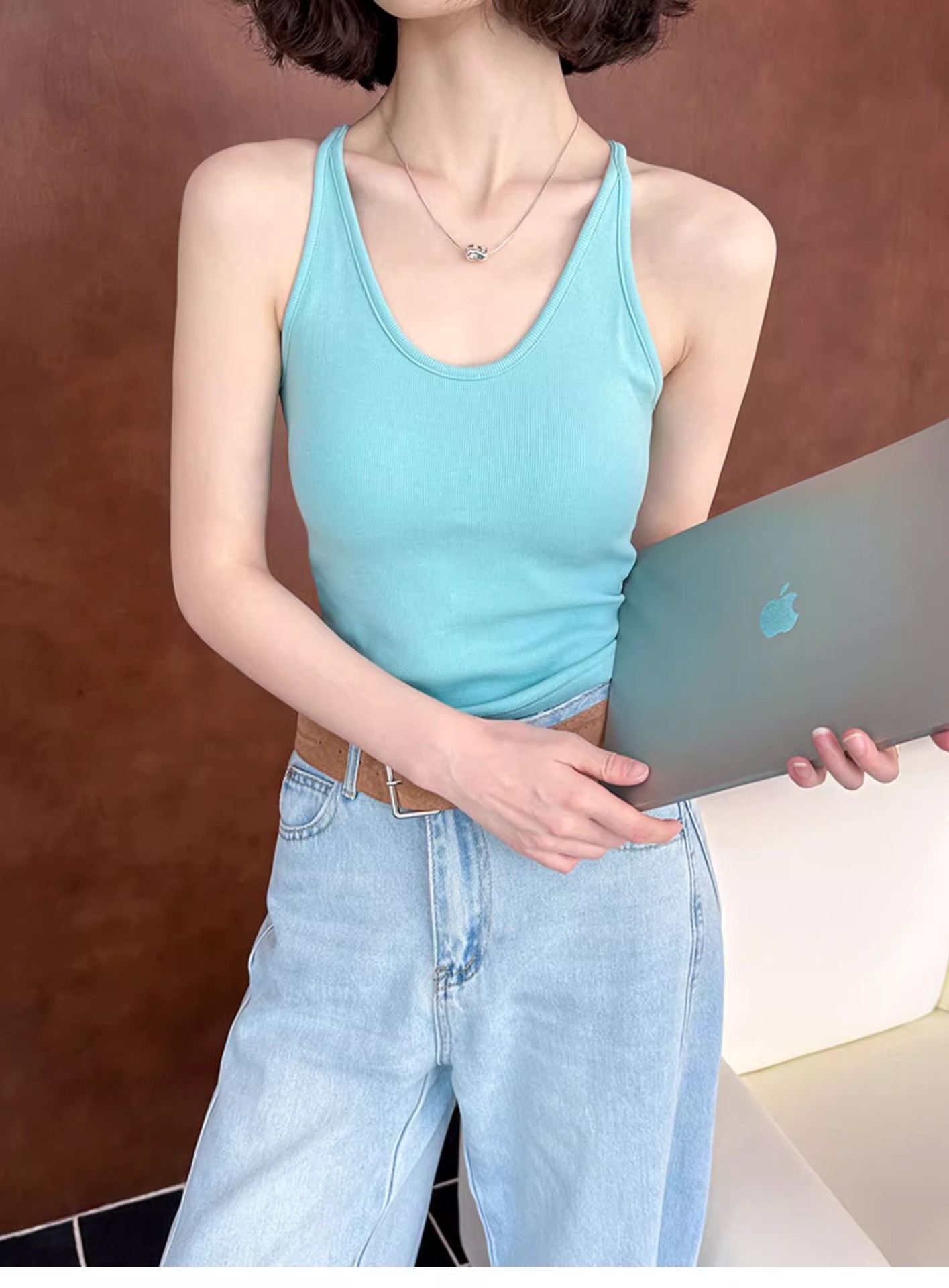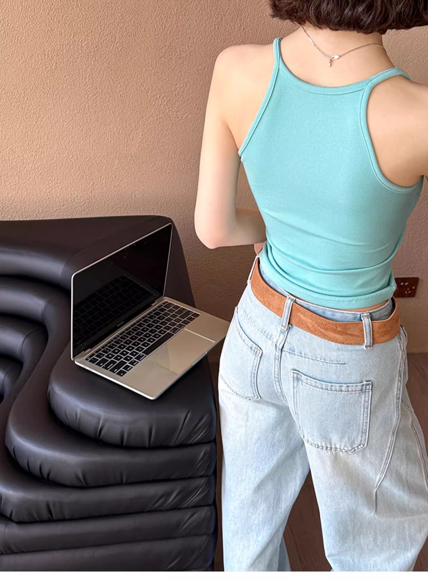여성용 신형 프렌치 홀터넥 캐미솔, 가슴 패드 일체형 캔디 컬러 이너웨어, 패셔너블하고 스타일리시한 여성용 탑스토어 가기