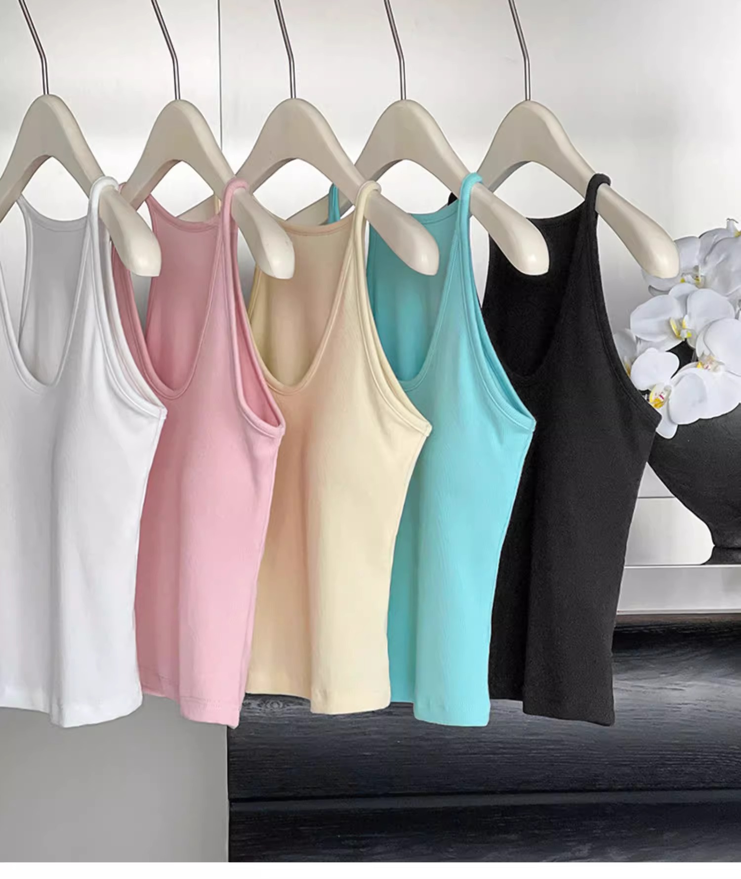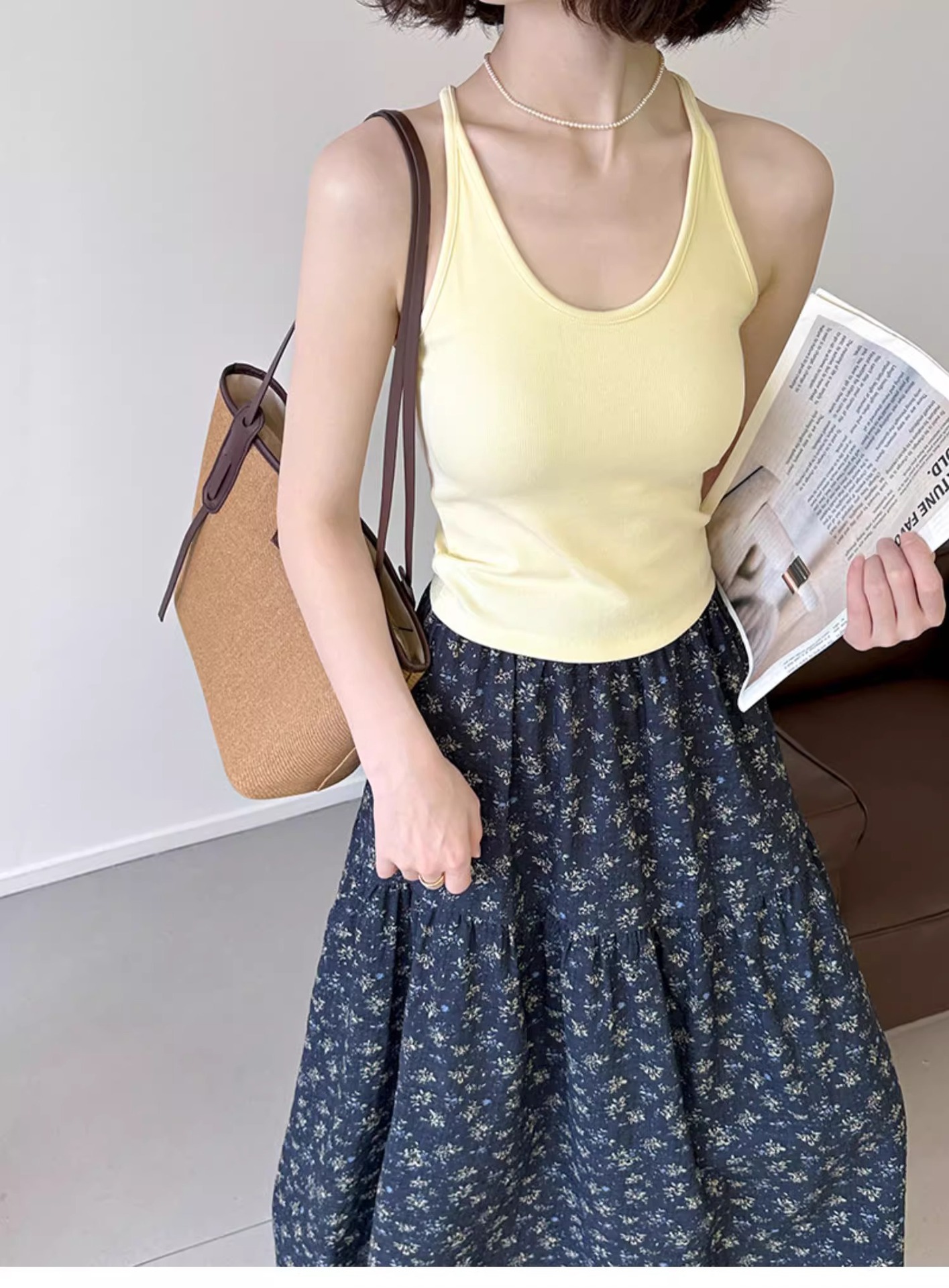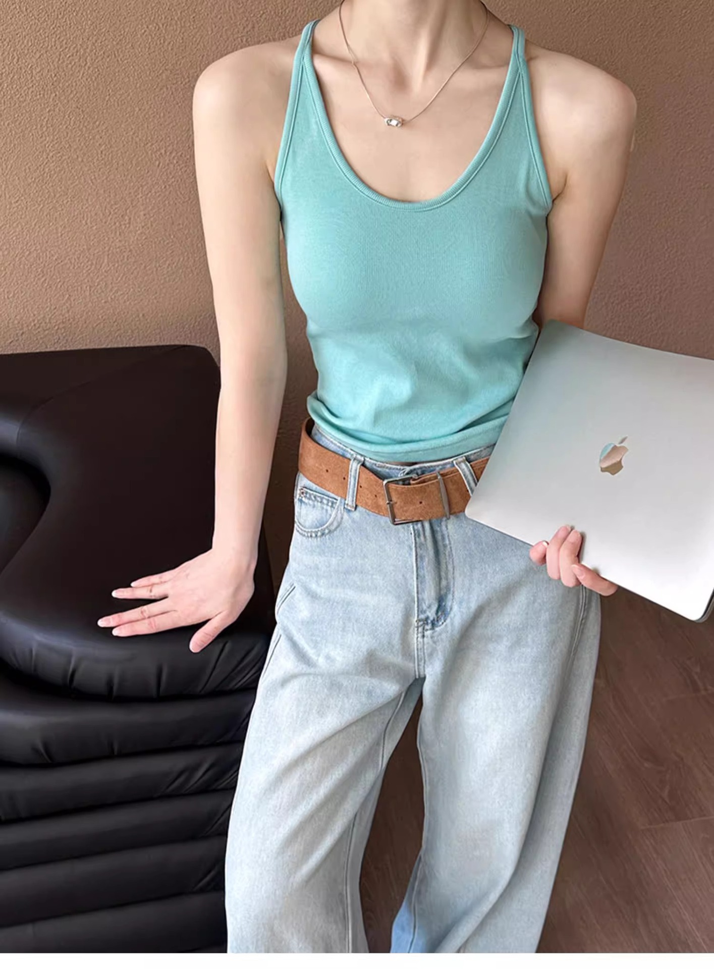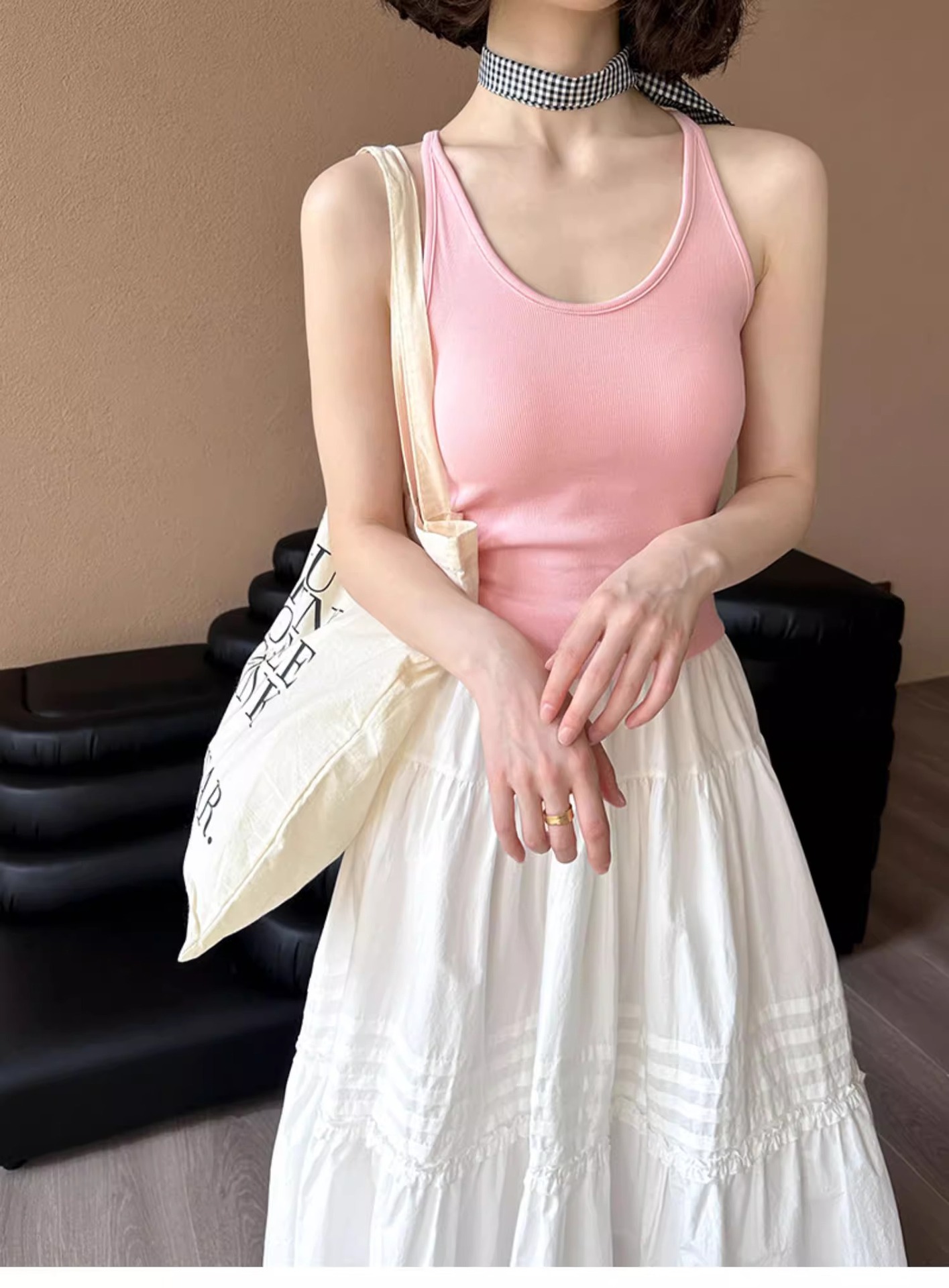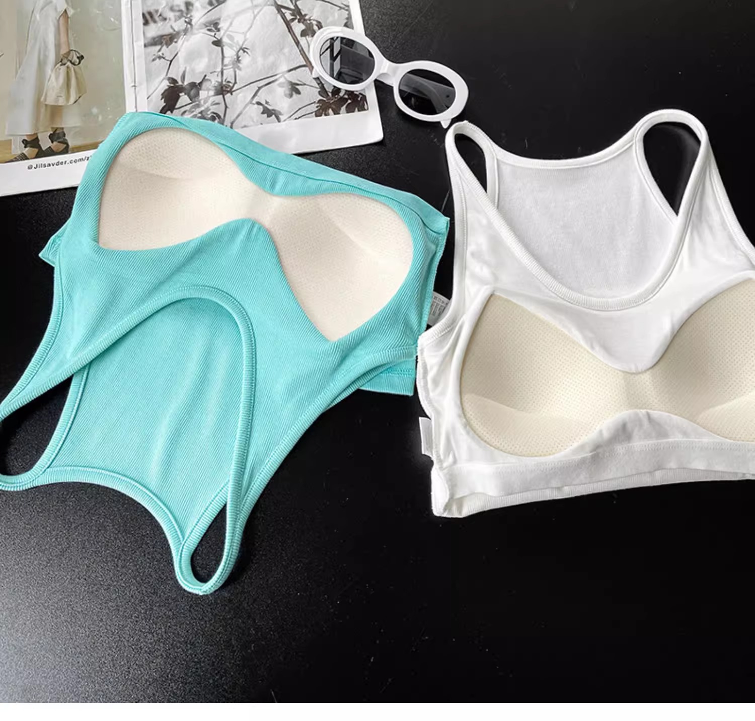 여성용 신형 프렌치 홀터넥 캐미솔, 가슴 패드 일체형 캔디 컬러 이너웨어, 패셔너블하고 스타일리시한 여성용 탑스토어 가기