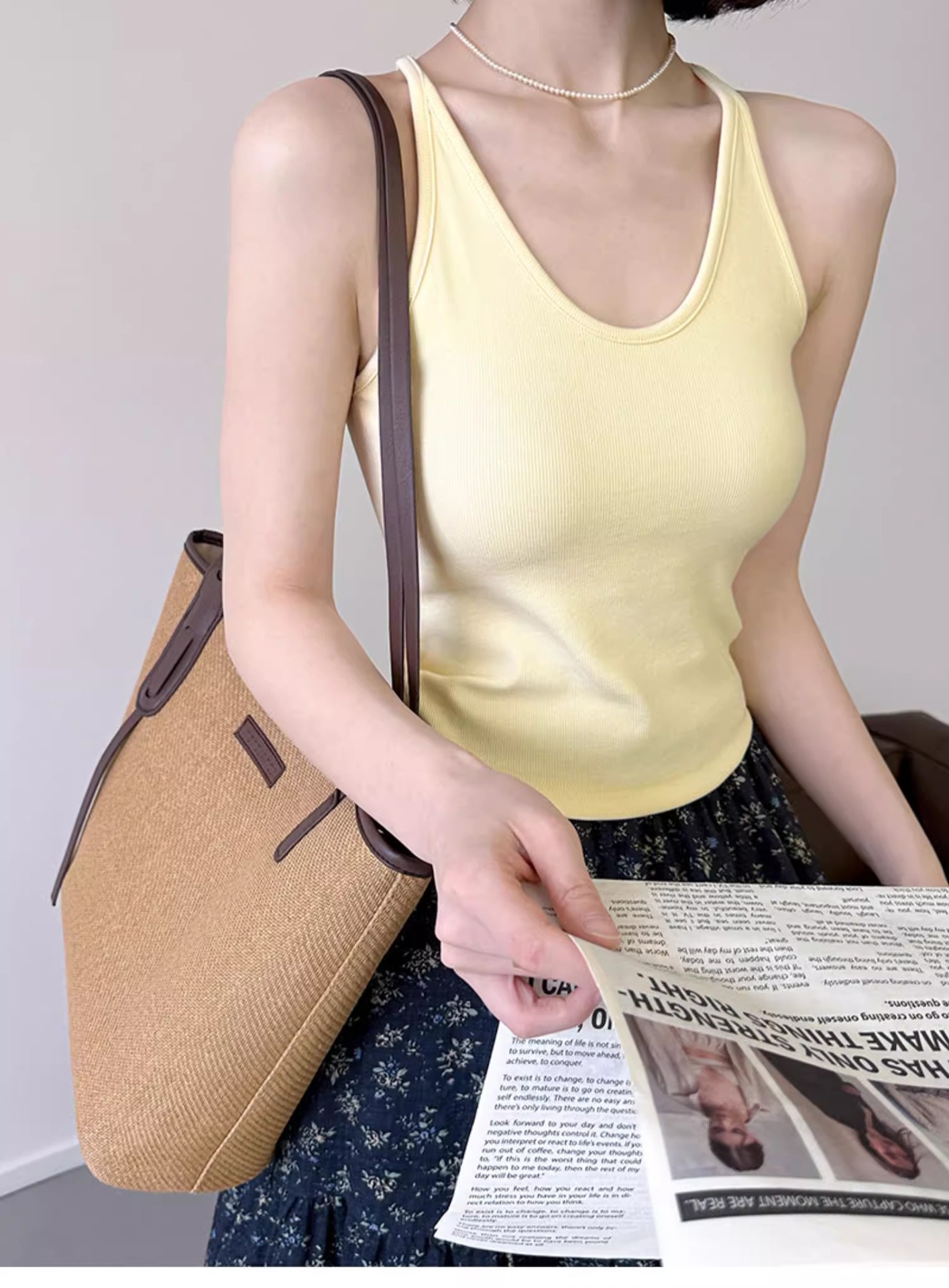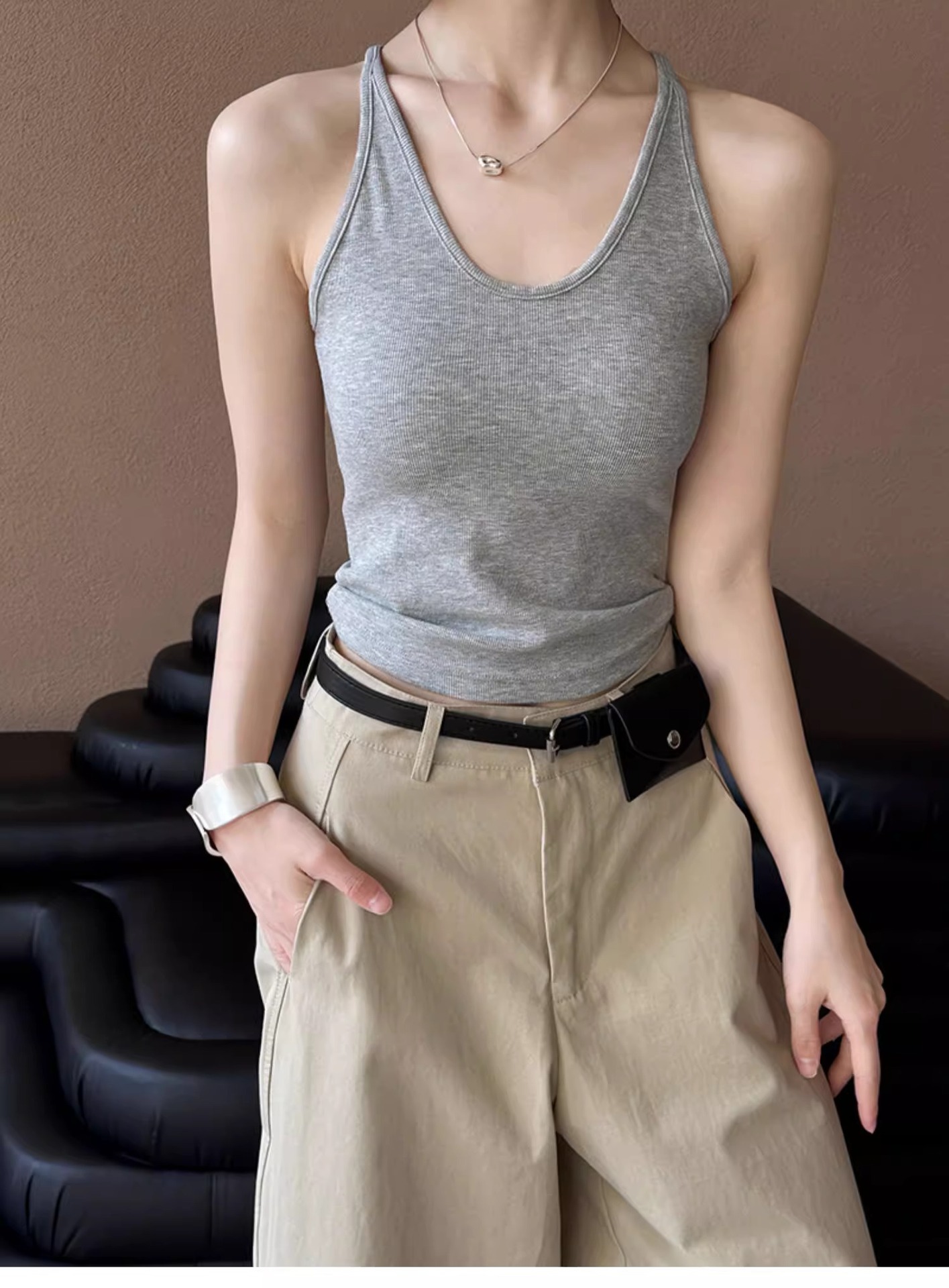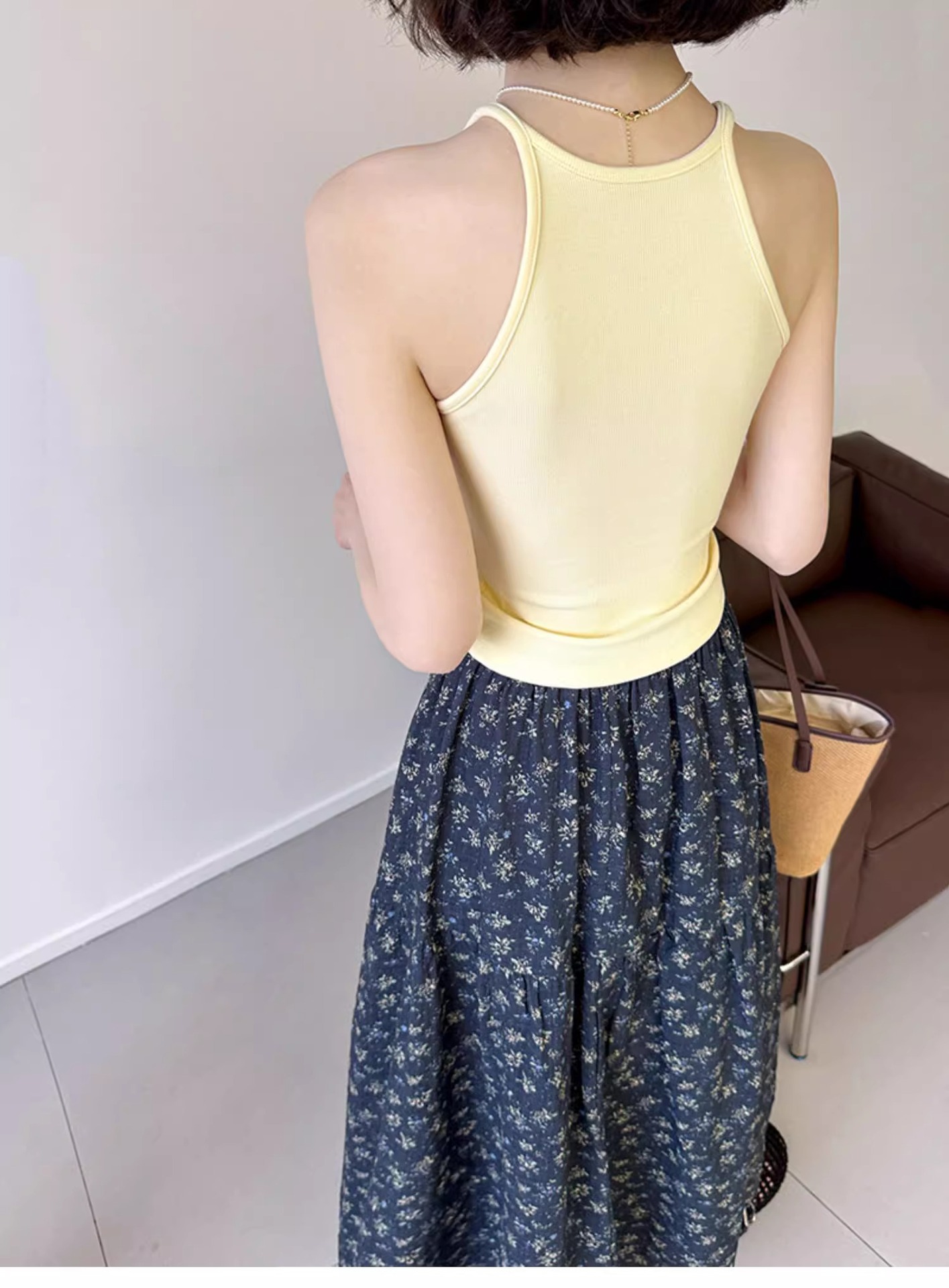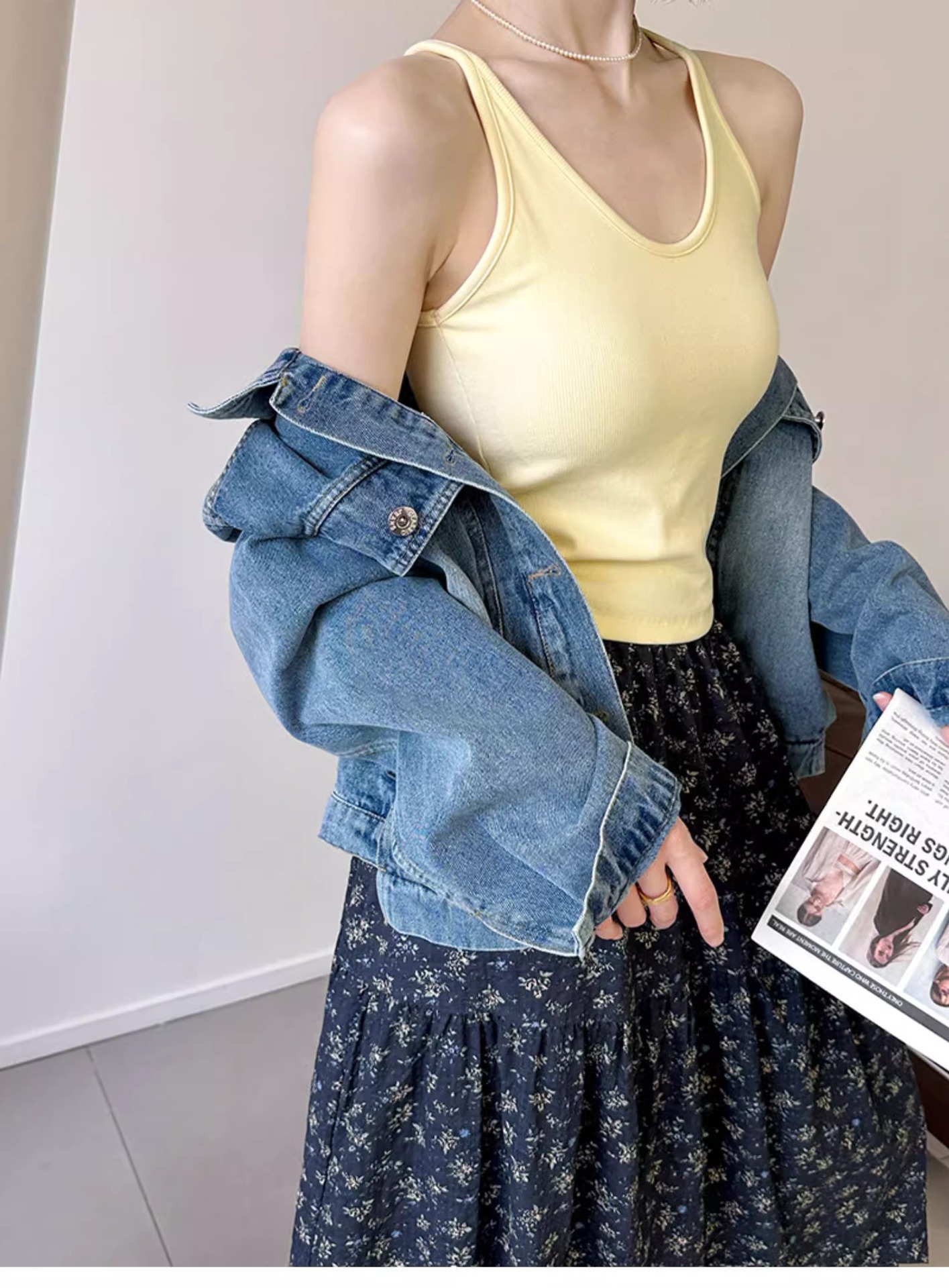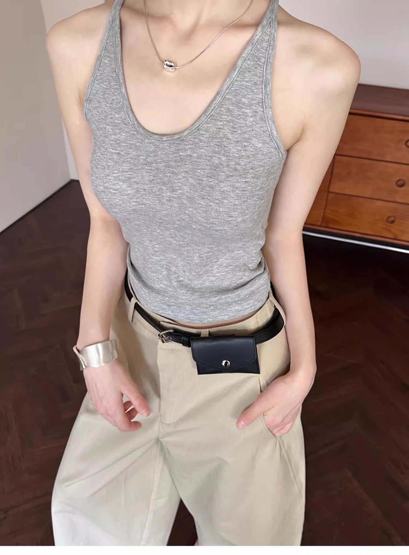 여성용 신형 프렌치 홀터넥 캐미솔, 가슴 패드 일체형 캔디 컬러 이너웨어, 패셔너블하고 스타일리시한 여성용 탑스토어 가기