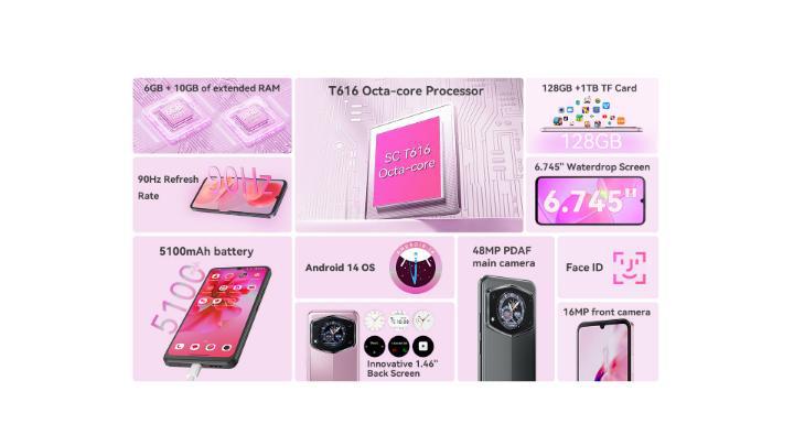 CUBOT 새로운 A30 안드로이드 14 대형 스크린 스마트폰 얼굴 인식 홍콩 배송