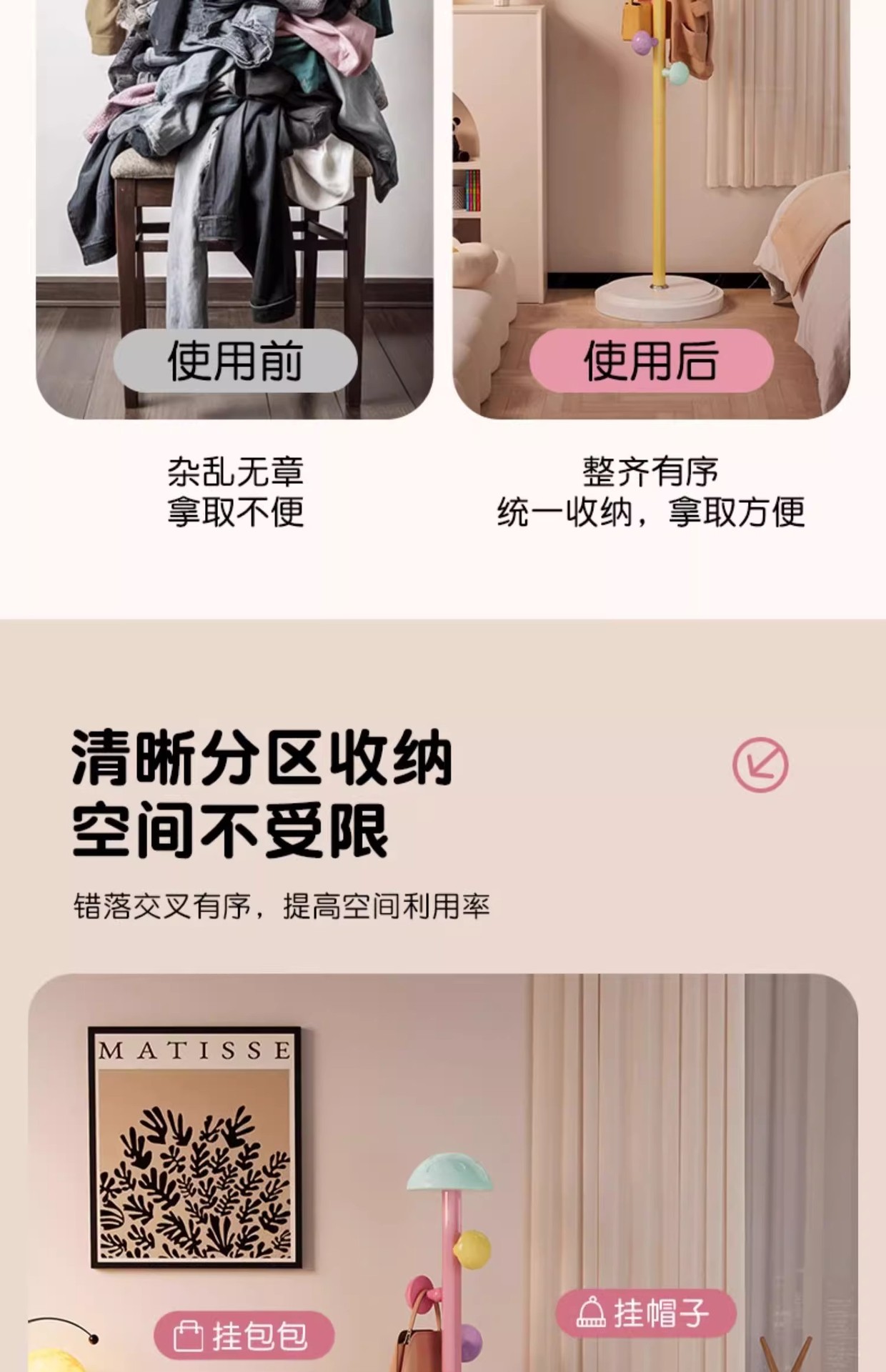바닥걸이형 옷걸이, 어린이용 옷걸이, 가정용 침실 침대 옆 이동식 가방걸이, 가볍고 고급스럽고 공간을 차지하지 않는 옷걸이 gω스토어 가기