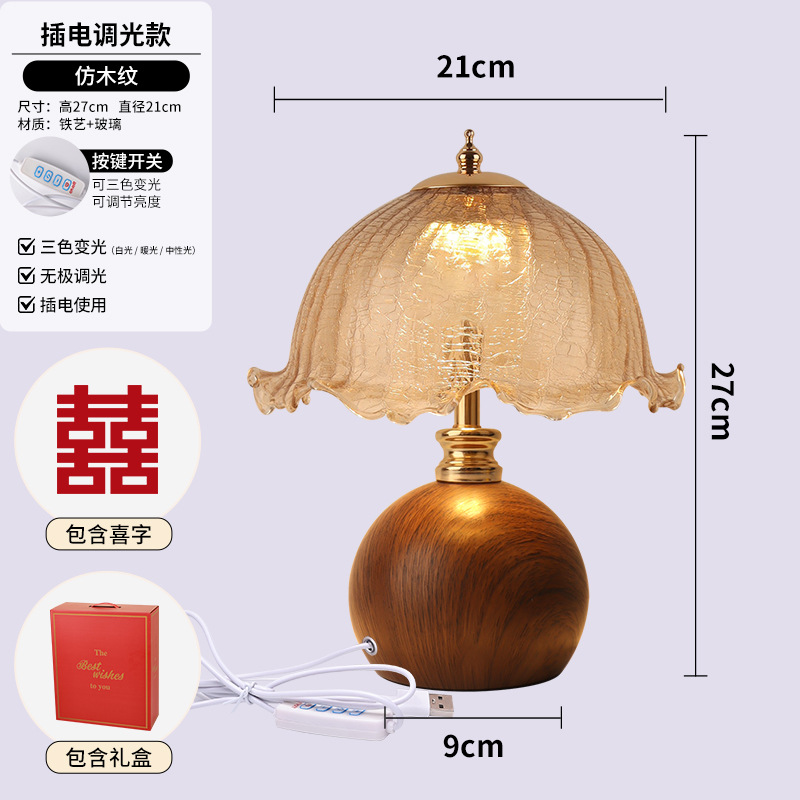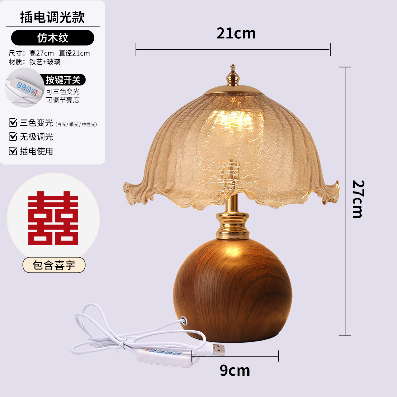 신혼부부의 영원한 램프, 침대 옆 램프 한 쌍, 침실 복고풍 축제 웨딩 테이블 램프, 신부를 위한 선물