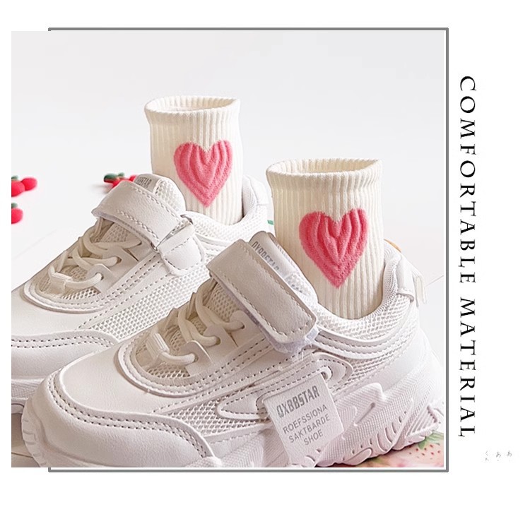 어린이 양말 봄과 가을 핑크 사랑 일본식 귀여운 달콤한 대학 스타일 스포츠 통기성 학생 중간 높이 양말