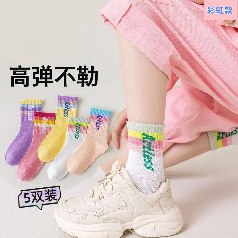 어린이 양말 봄과 가을 핑크 사랑 일본식 귀여운 달콤한 대학 스타일 스포츠 통기성 학생 중간 높이 양말스토어 가기