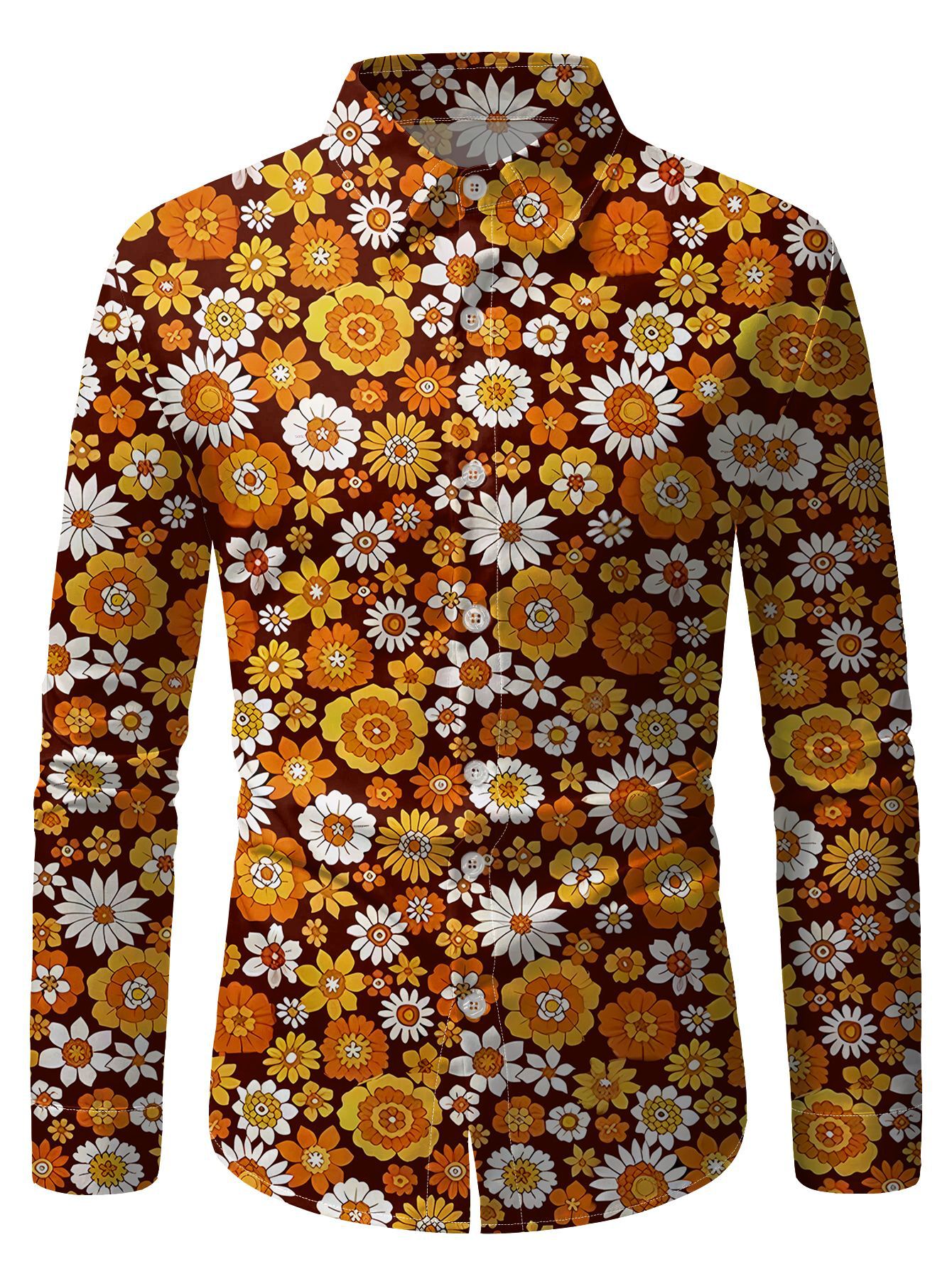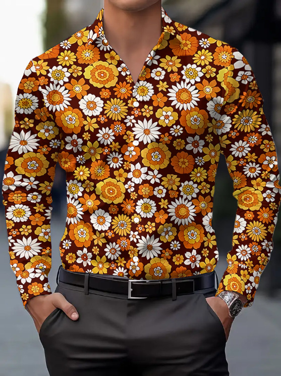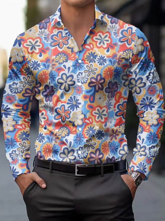 국경을 넘는 인기 남성 긴팔 셔츠 70년대 디스코 디지털 프린트 셔츠 봄, 가을 캐주얼 패션스토어 가기