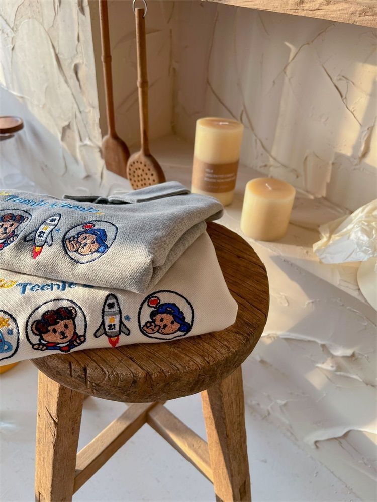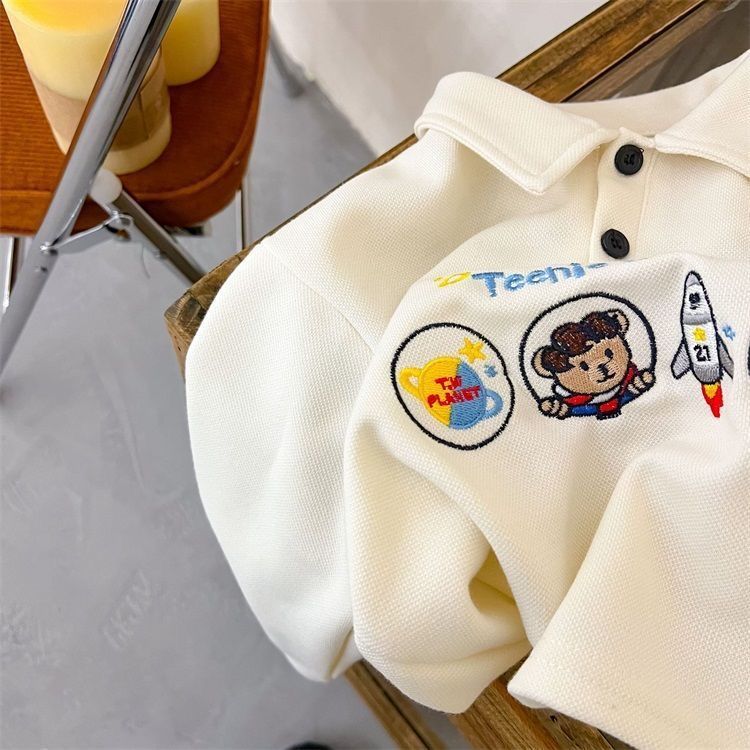 아동용 상의, 남아 및 여아용 봄, 가을 신상 폴로 셔츠, 패셔너블한 곰 자수 스웨트 셔츠, 루즈한 긴팔 상의스토어 가기