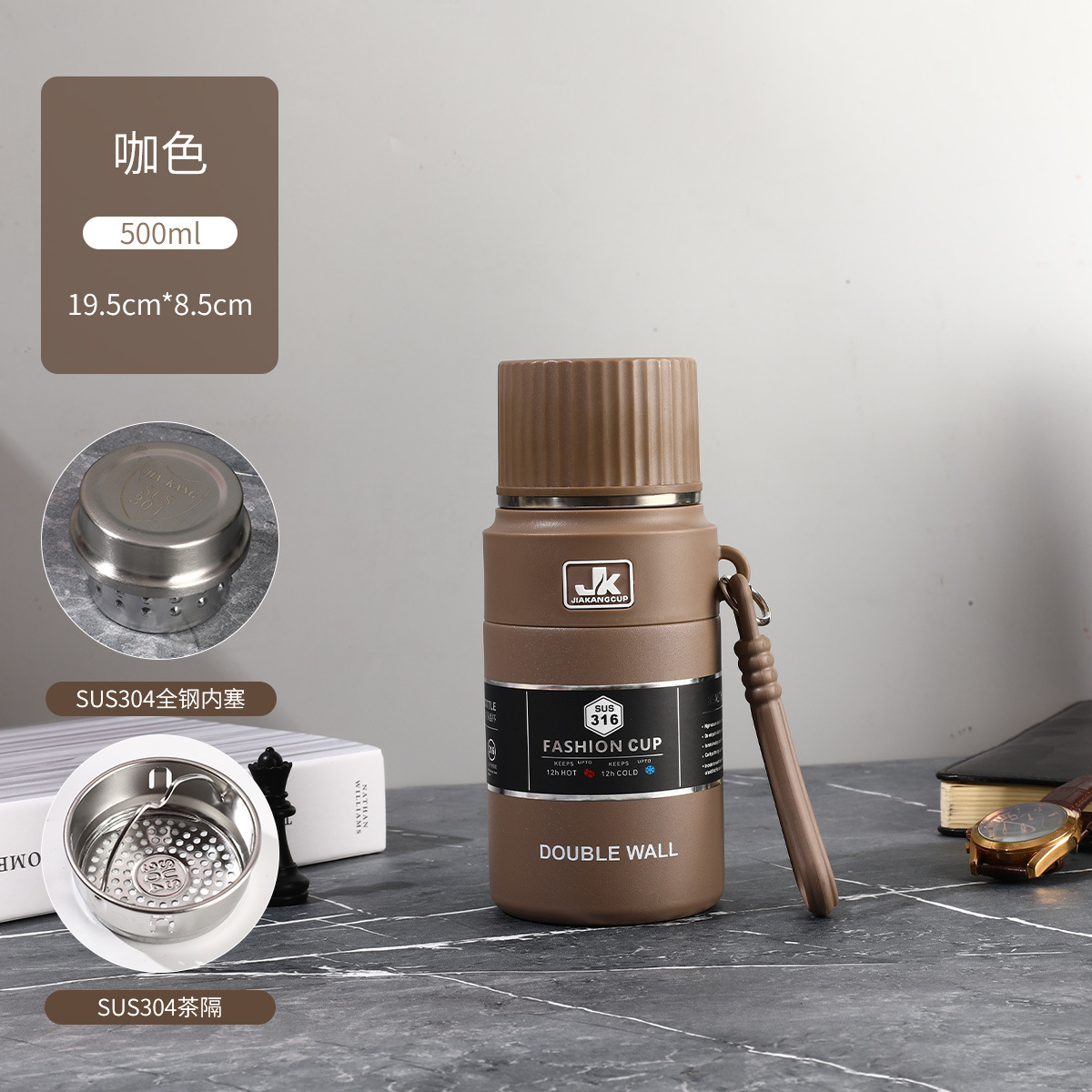 대용량 슬링 보온병 컵 316 스테인레스 스틸 스포츠 물병 차 뚜껑 야외 휴대용 전체 스틸 컵 등산 주전자스토어 가기