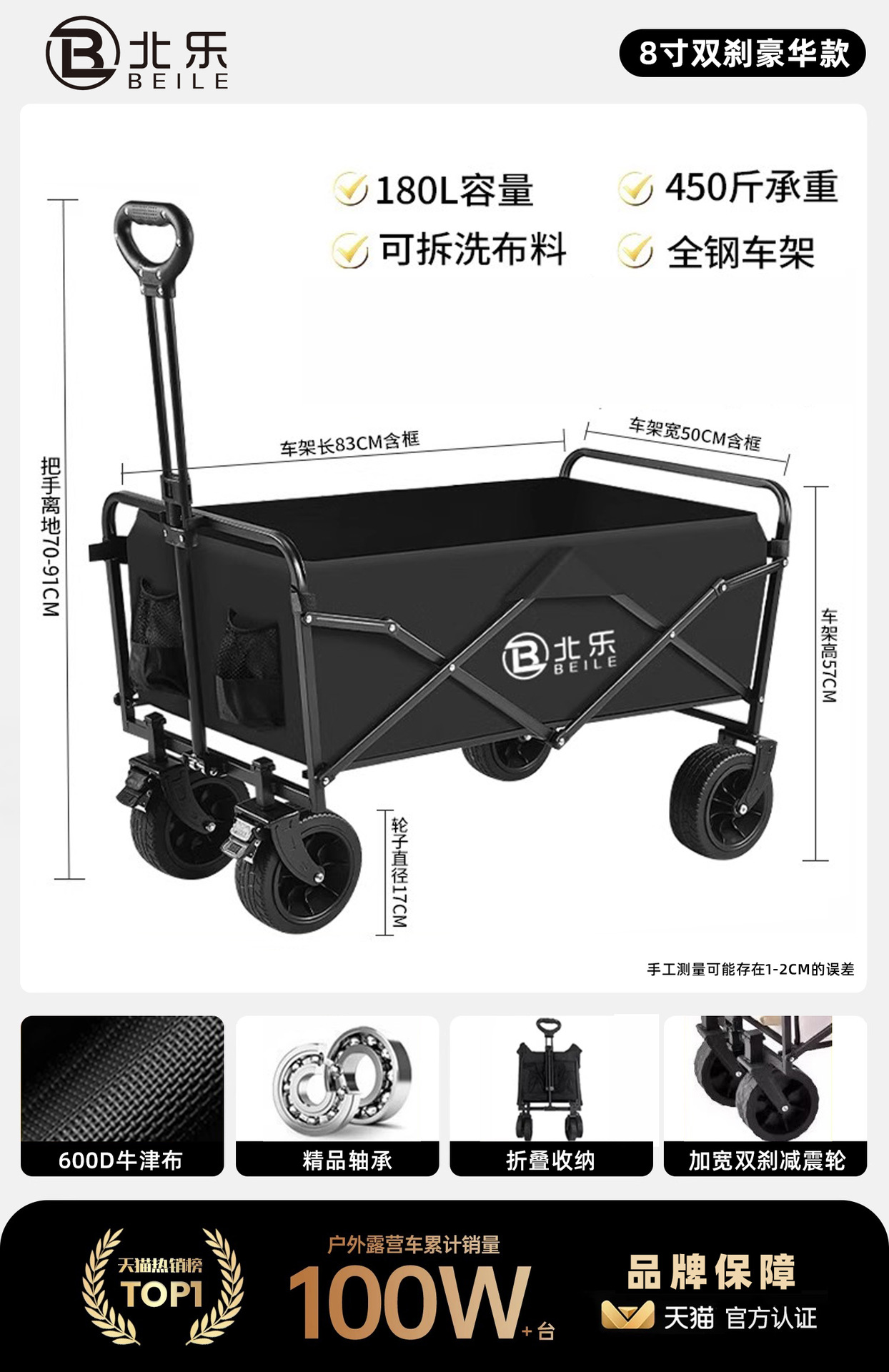 • 8inch 더블 브레이크 럭셔리 모델 - 블랙(직경 17cm 폭의 충격 흡수 휠/더 많은 노동 절약/더블 브레이크)