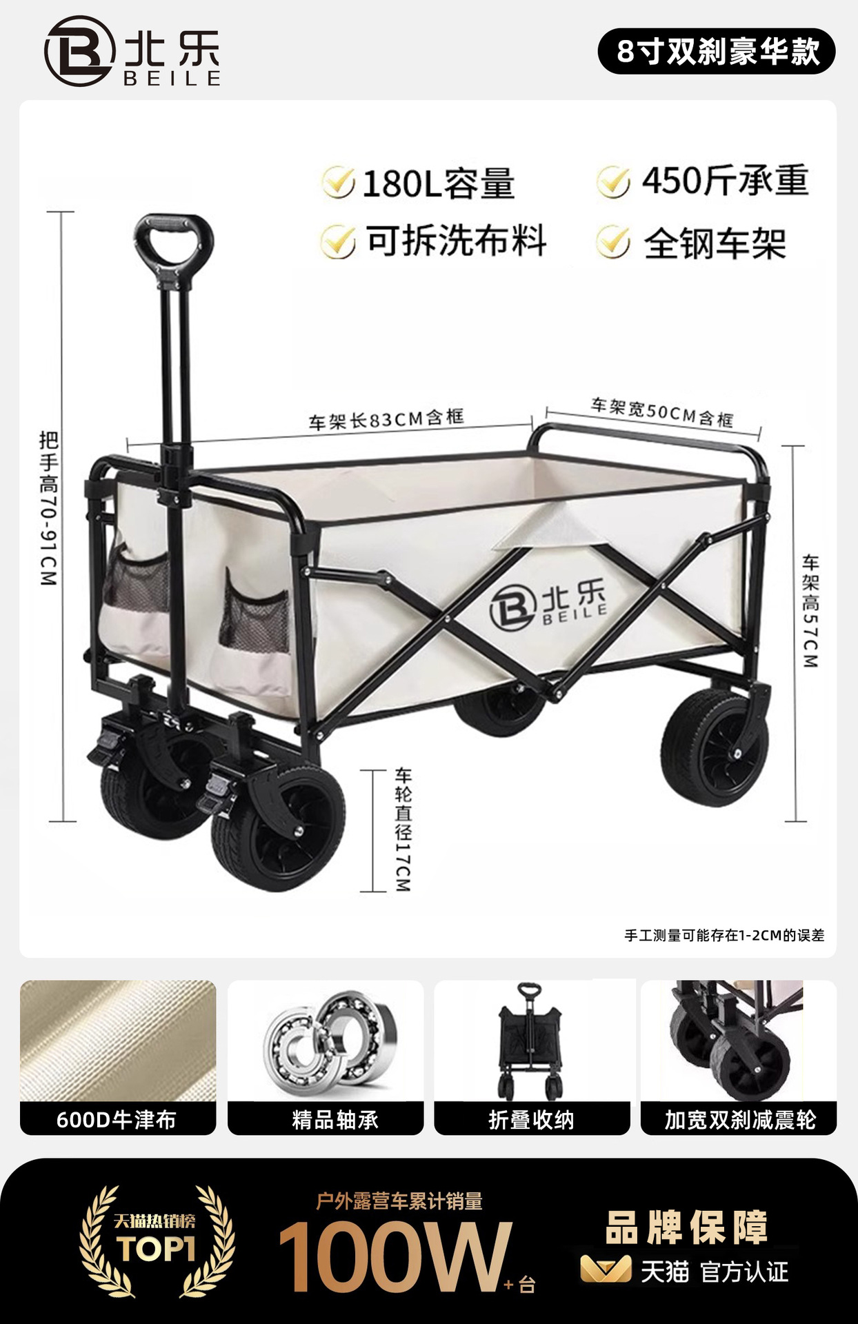 • 8inch 더블 브레이크 럭셔리 모델 - 오프화이트(직경 17cm 폭의 충격 흡수 휠/더 많은 노동 절약/더블 브레이크)
