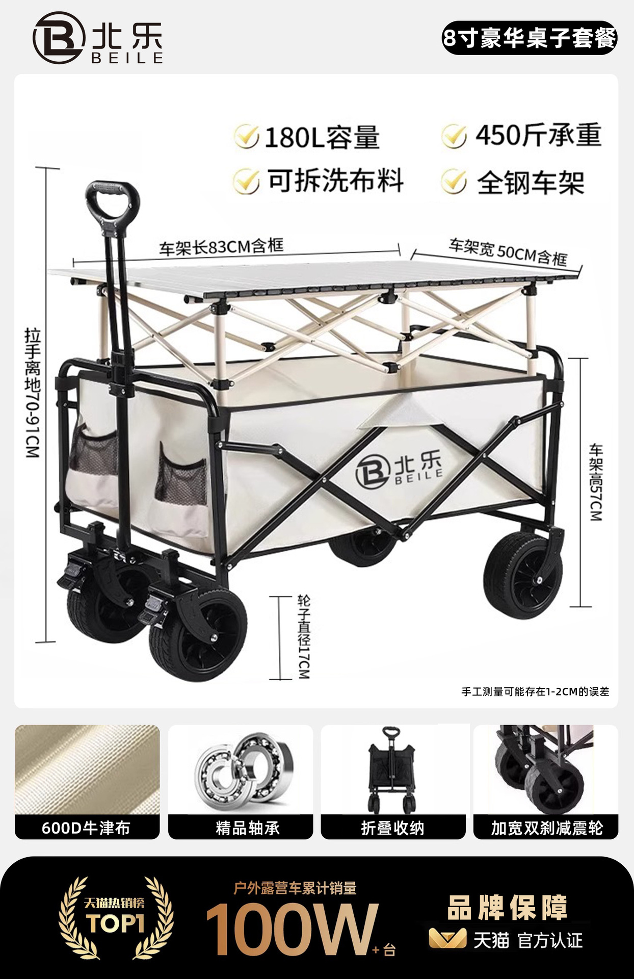 • [테이블 패키지] 8inch 럭셔리 모델 - 오프화이트 + 8inch 테이블 (폭 7cm 사일런트 휠/독일 베어링/더블 브레이크)
