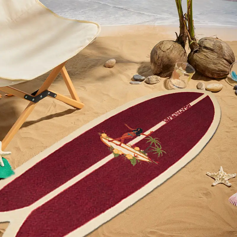 국경 간 temu 뜨거운 판매 여름 서핑 보드 시리즈 카펫 침실 두꺼운 피부 친화적 인 침대 옆 담요 거실 얼룩 방지 바닥 매트