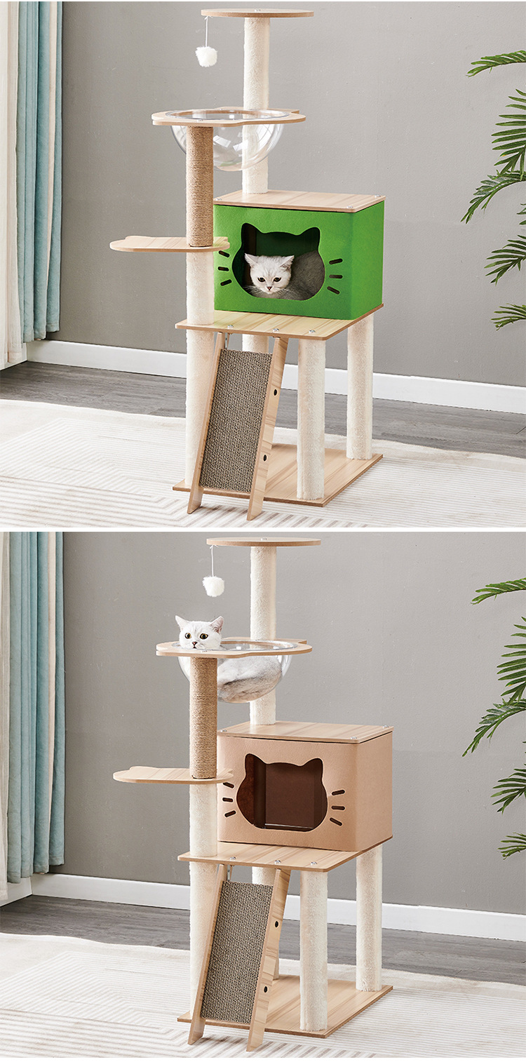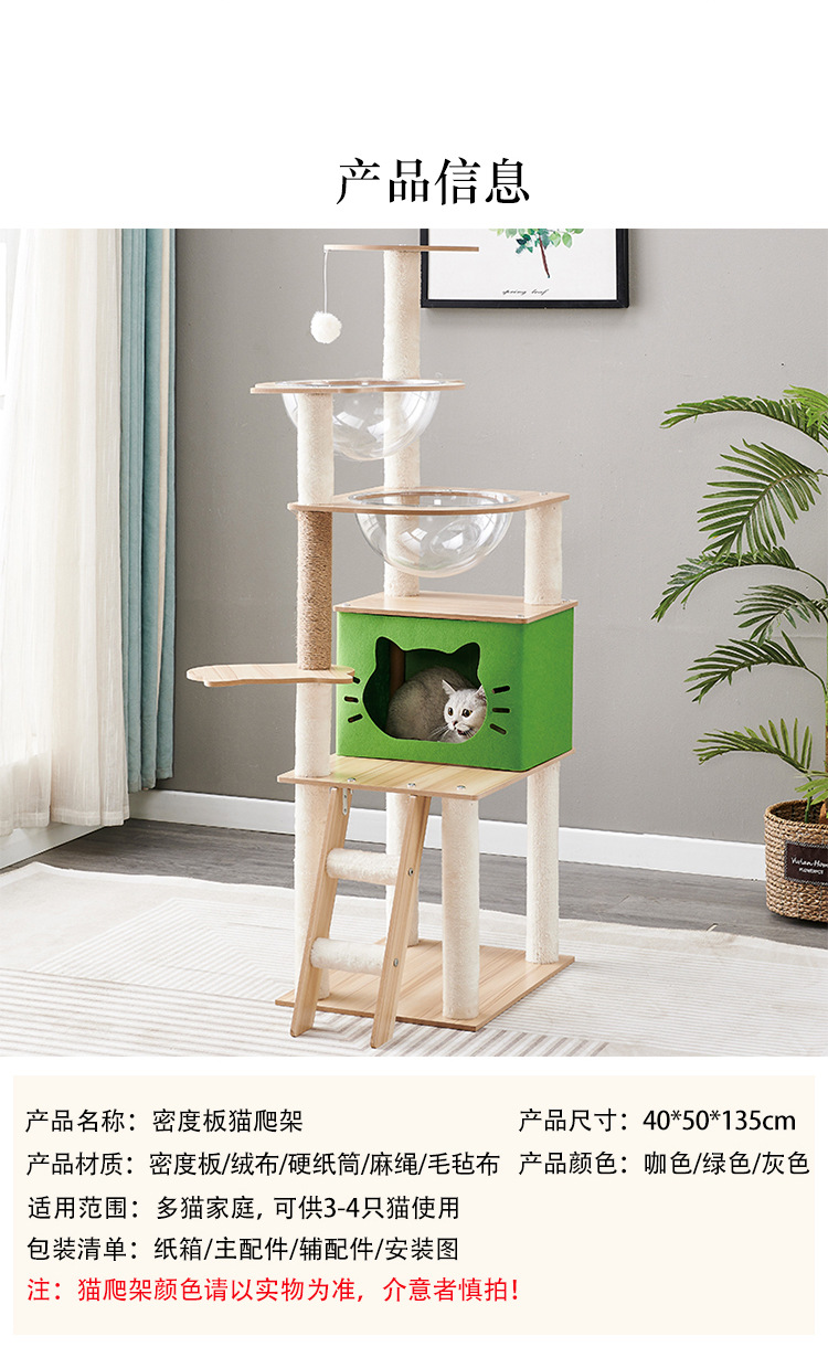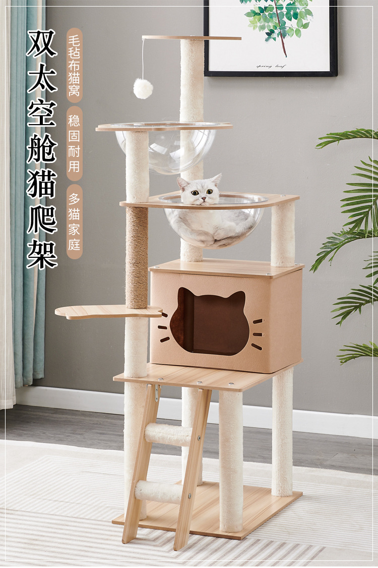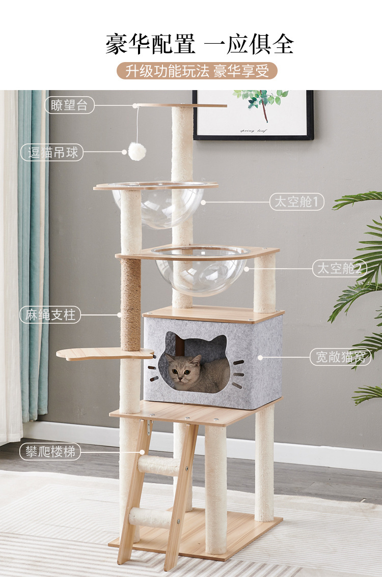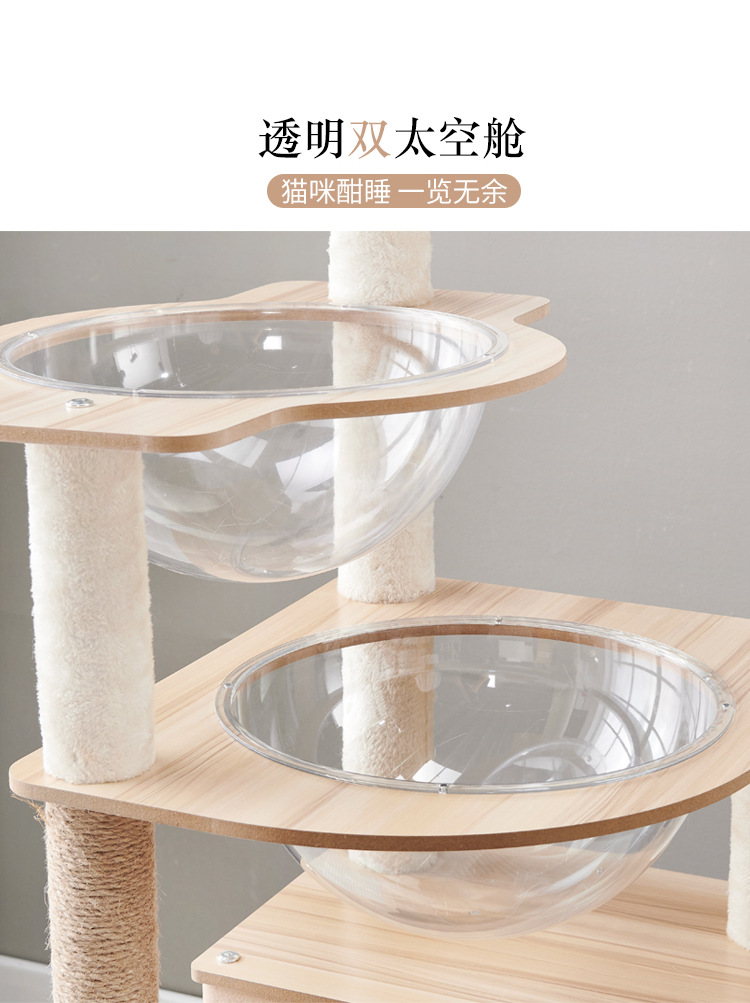 국경 간 고양이 장난감 고밀도 보드 고양이 집과 고양이 아파트와 산호초 스크래치 포스트 고양이 클라이밍 프레임이 있는 투명한 우주 캡슐