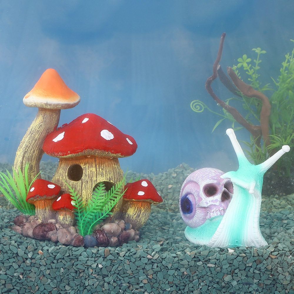 수조 조경 고딕 스타일 공포 해골 달팽이 장식품 수지 시뮬레이션 버섯 피난처 수족관 장식품스토어 가기