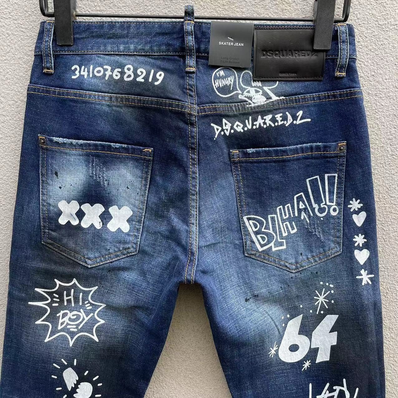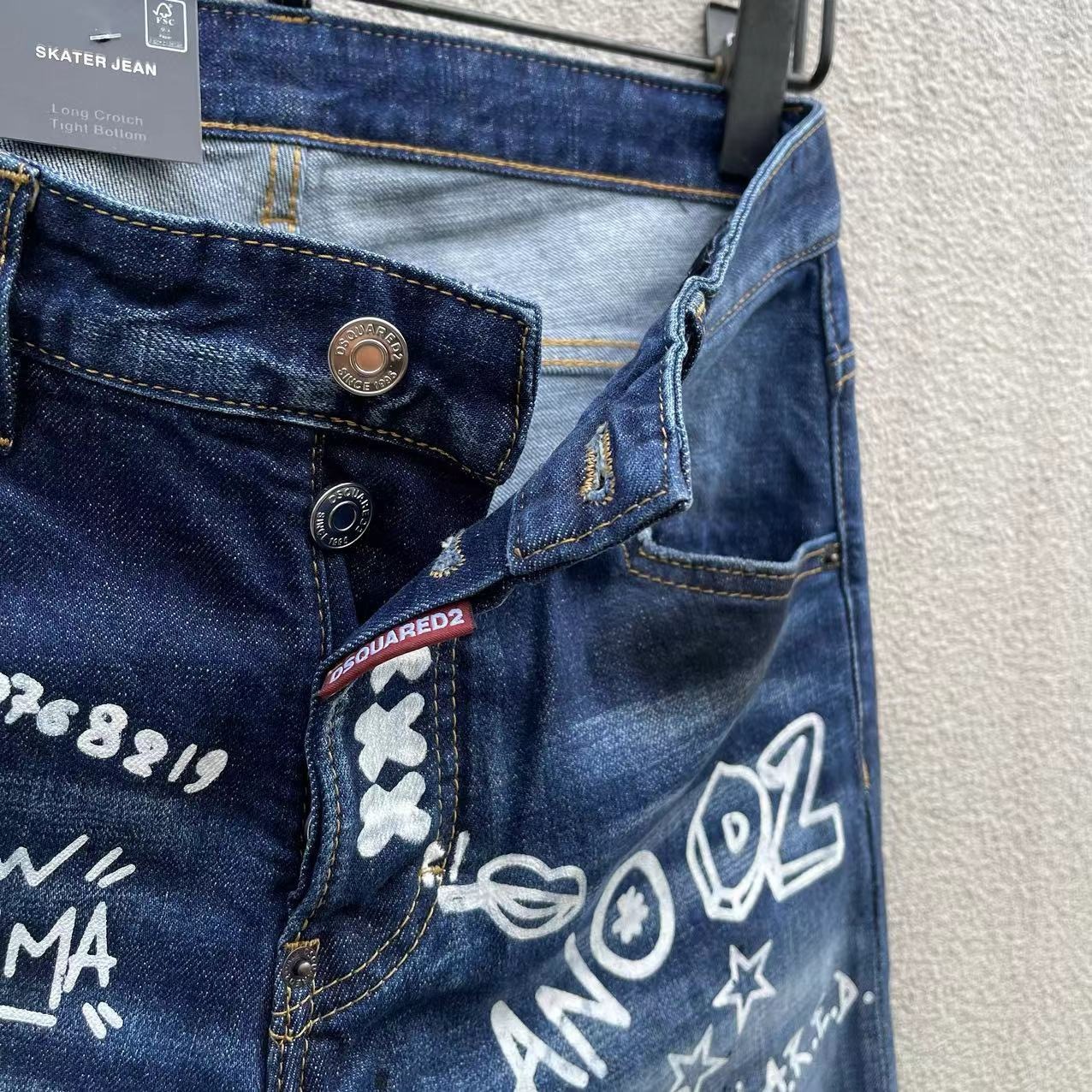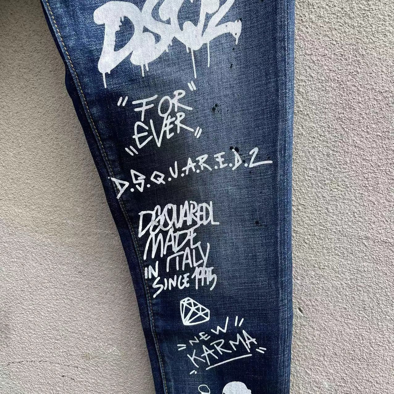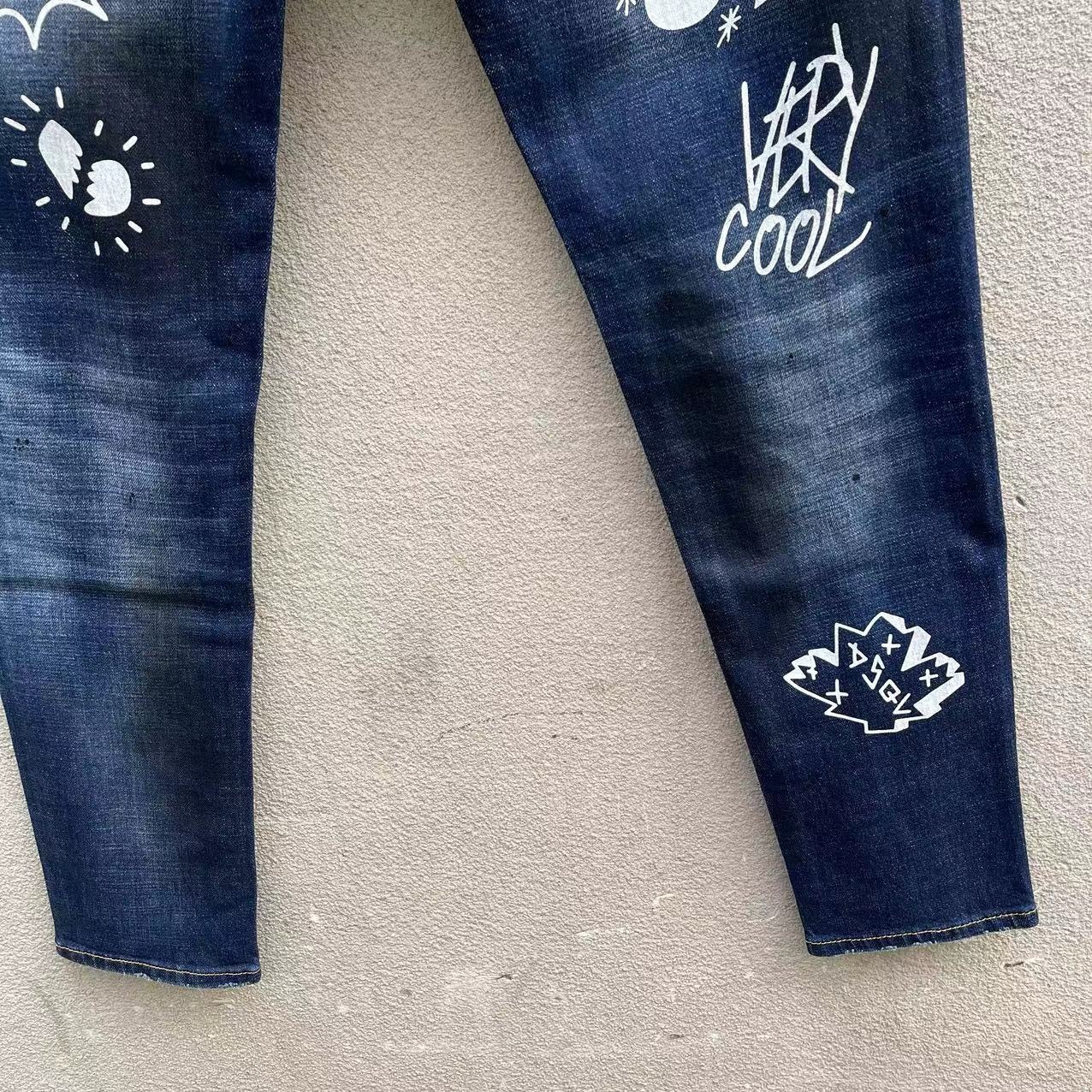 25 신상 데님 바지 남성 d2 슬림핏 캐주얼 워싱 풀 스트립 그래피티 프린트 캐주얼 바지 마이크로 엘라스틱 트렌디 C073스토어 가기