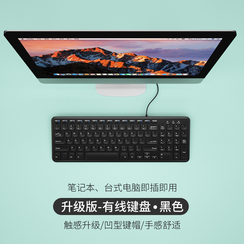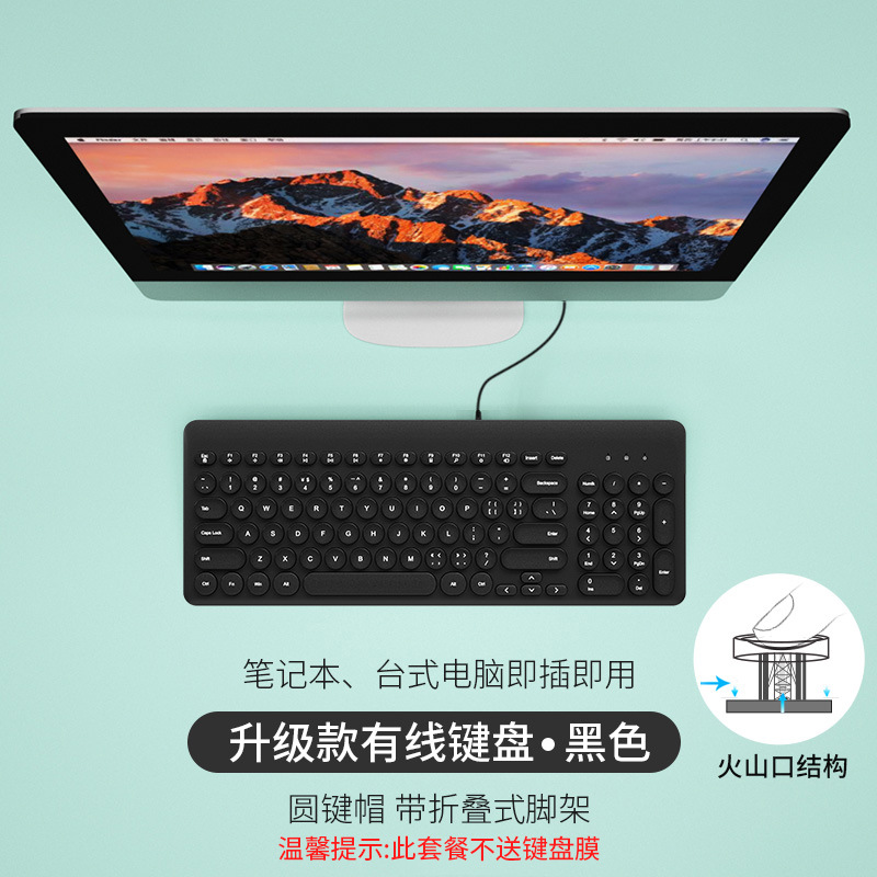 BOW 초콜릿 키보드 유선 데스크탑 컴퓨터 노트북 USB 외부 홈 오피스 타이핑 무선 키보드 및 마우스 소형
