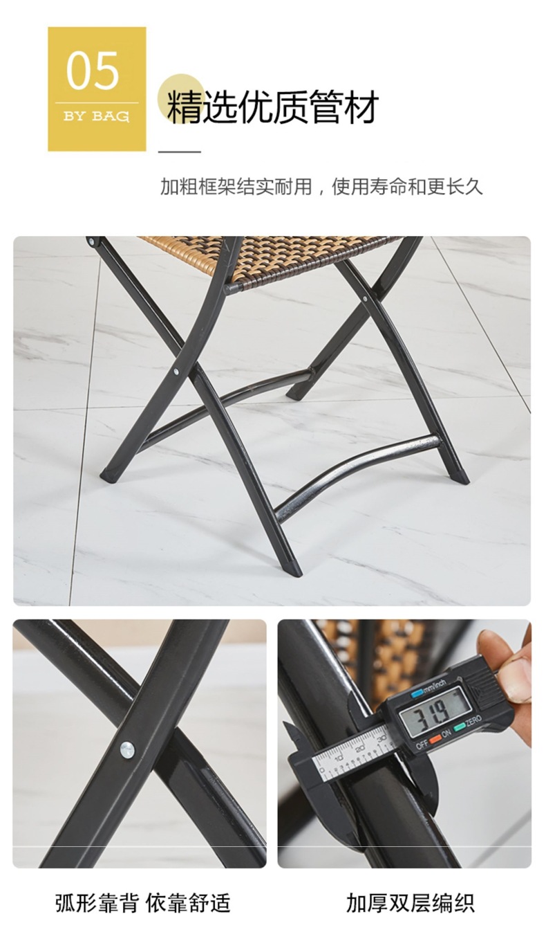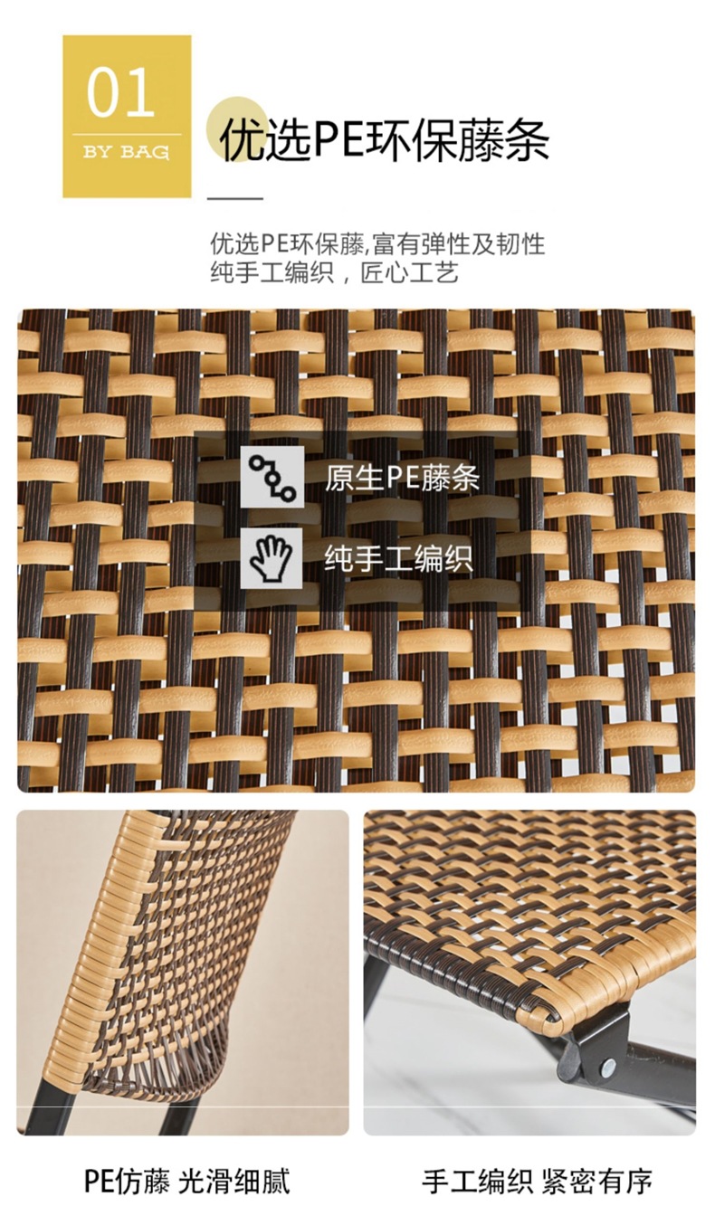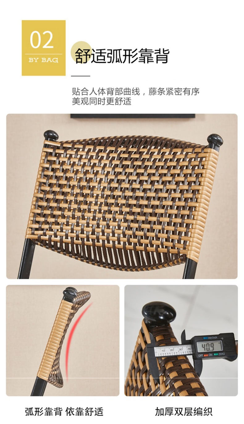 편조 발코니 등나무 의자 3피스 등받이 등나무 의자 접이식 의자 야외 안뜰 레저 커피 테이블 테이블과 의자 조합스토어 가기