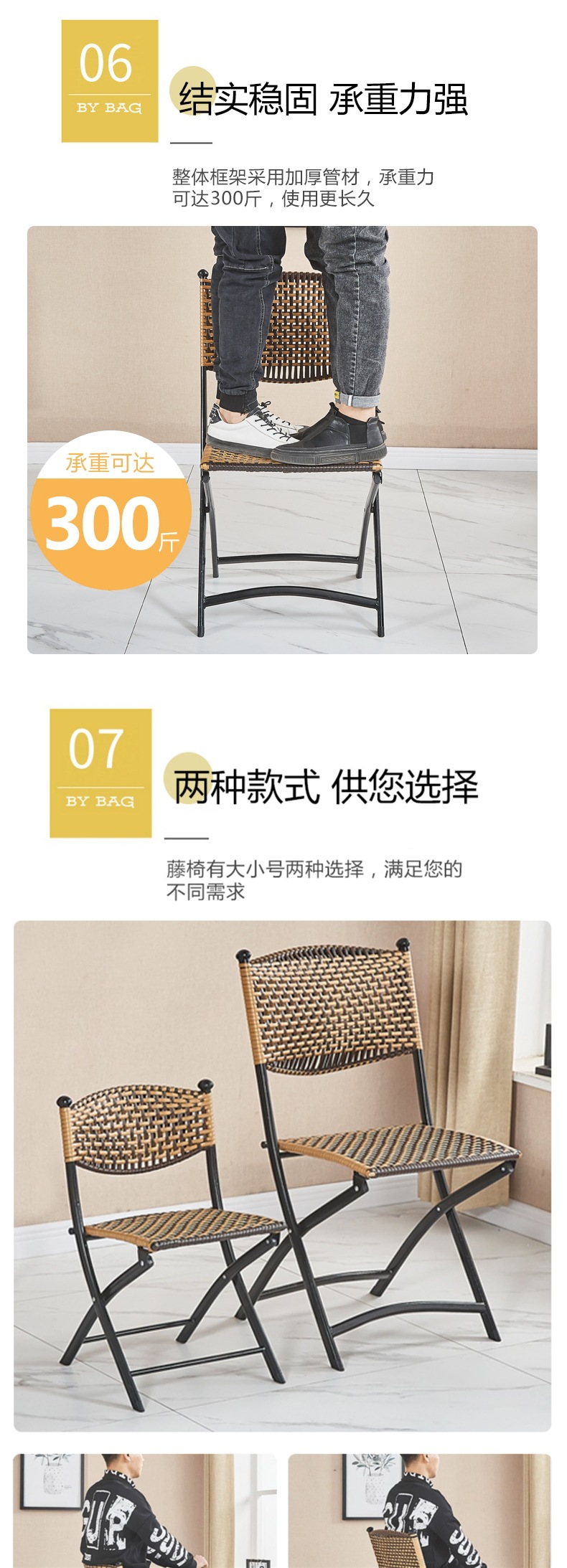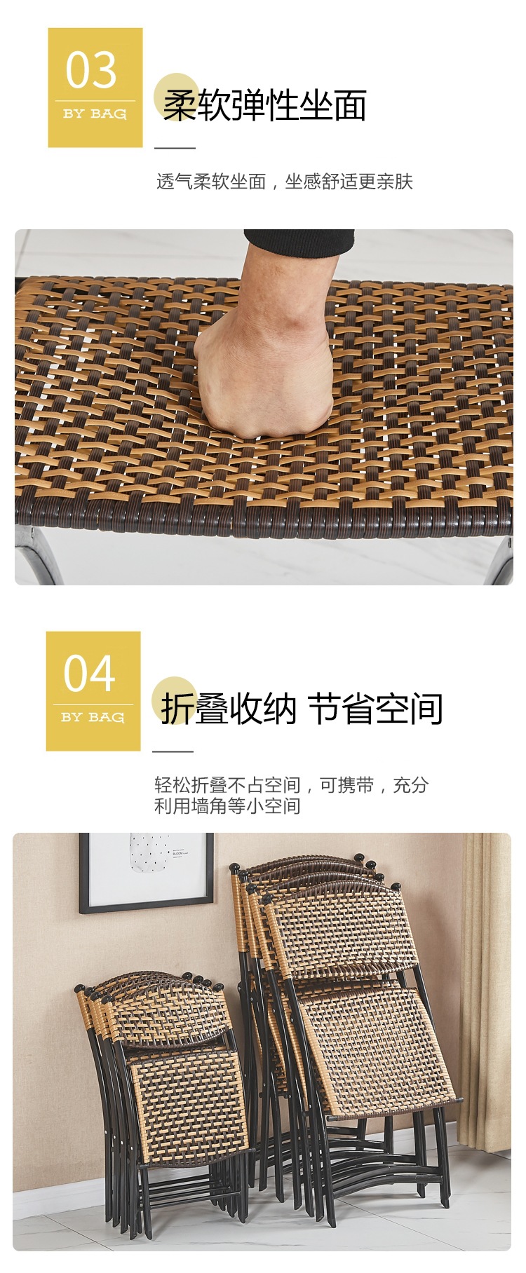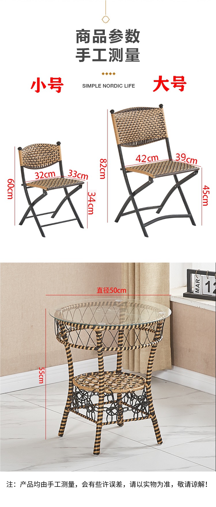 편조 발코니 등나무 의자 3피스 등받이 등나무 의자 접이식 의자 야외 안뜰 레저 커피 테이블 테이블과 의자 조합스토어 가기
