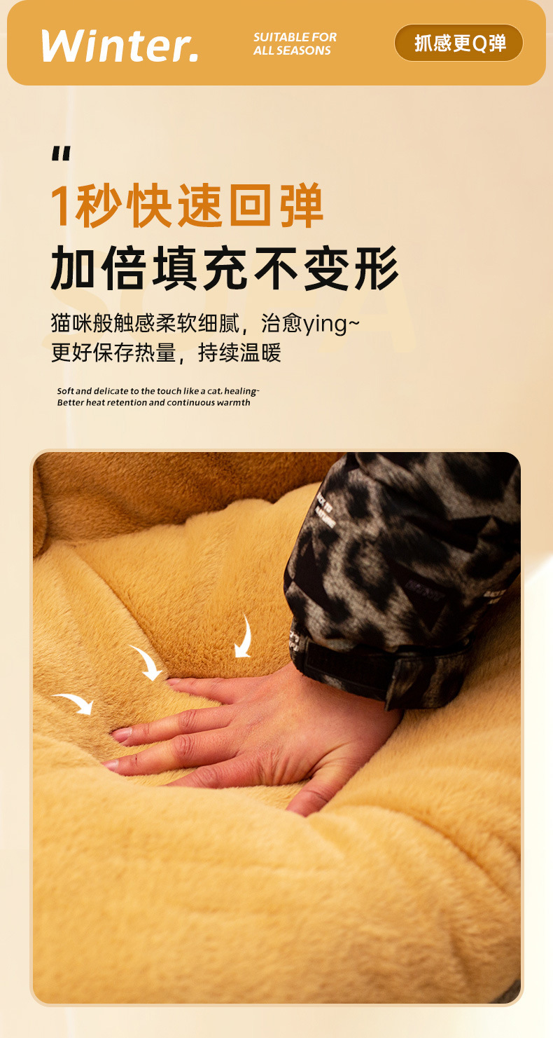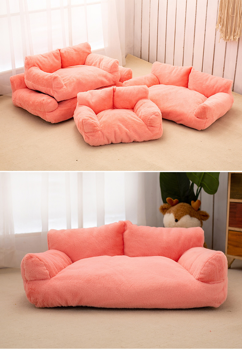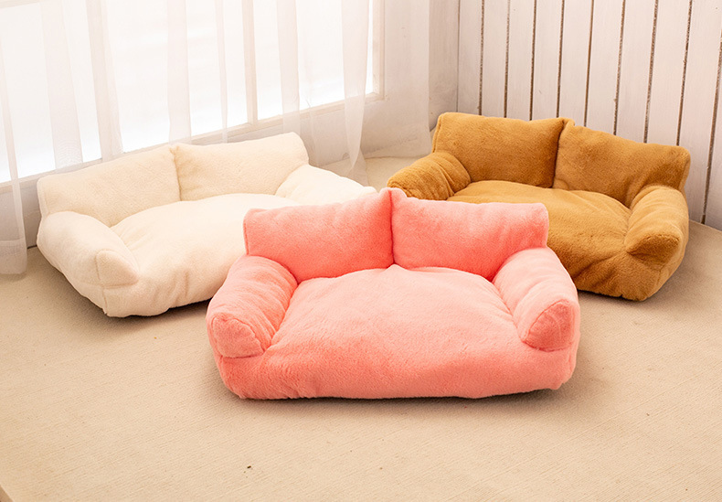 개 개집, 겨울 따뜻하고 벨벳으로 두꺼운 토끼 모피 소파, 소형 개 침대, 대형 개 매트, 탈부착 및 세탁 가능한 고양이 개집