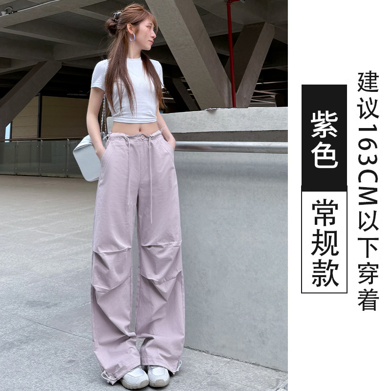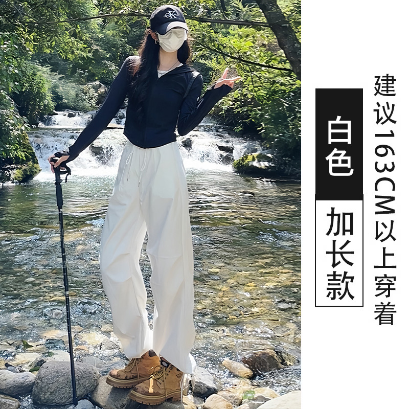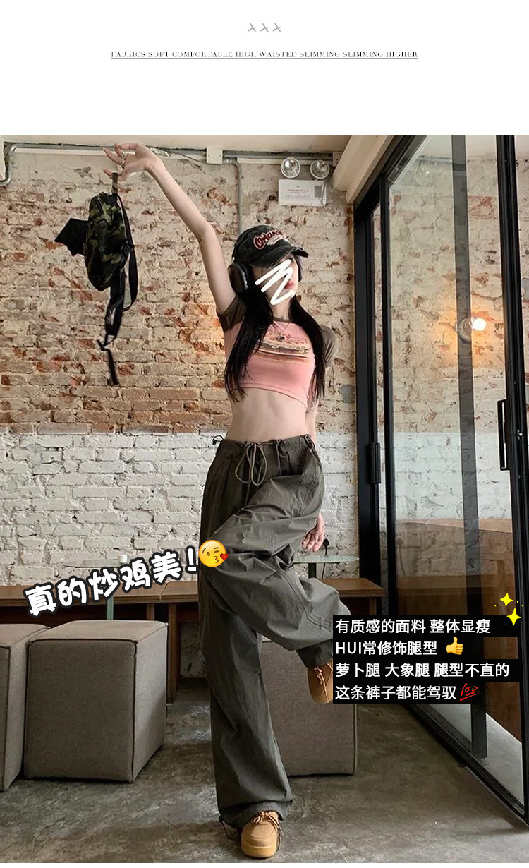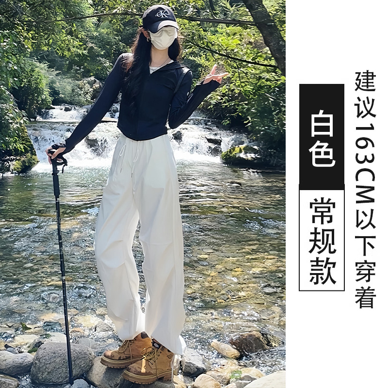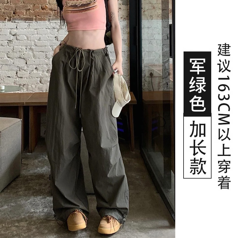 여름용 여성용 밀리터리 그린 속건성 작업복, 얇은 하이웨이스트, 루즈하고 드레이프한 스타일, 작은 사람들을 위한 편안한 스포츠 하이킹 팬츠