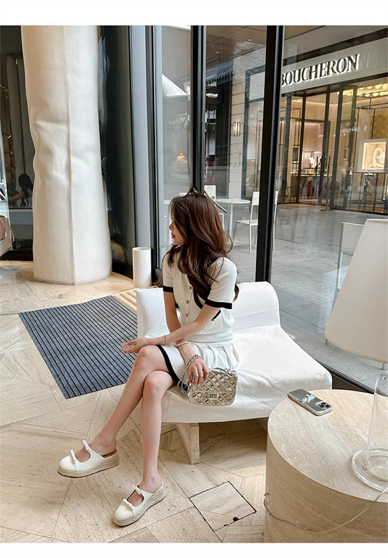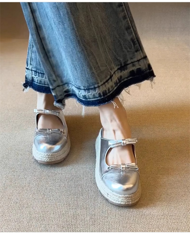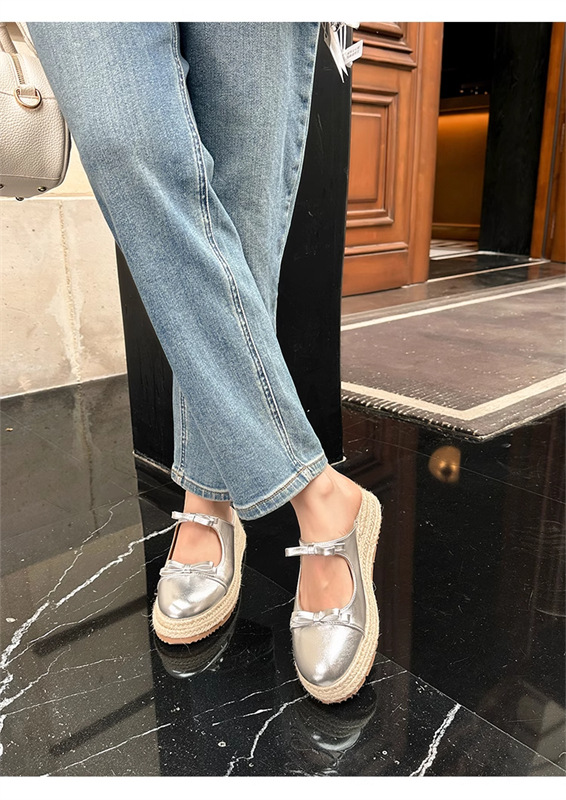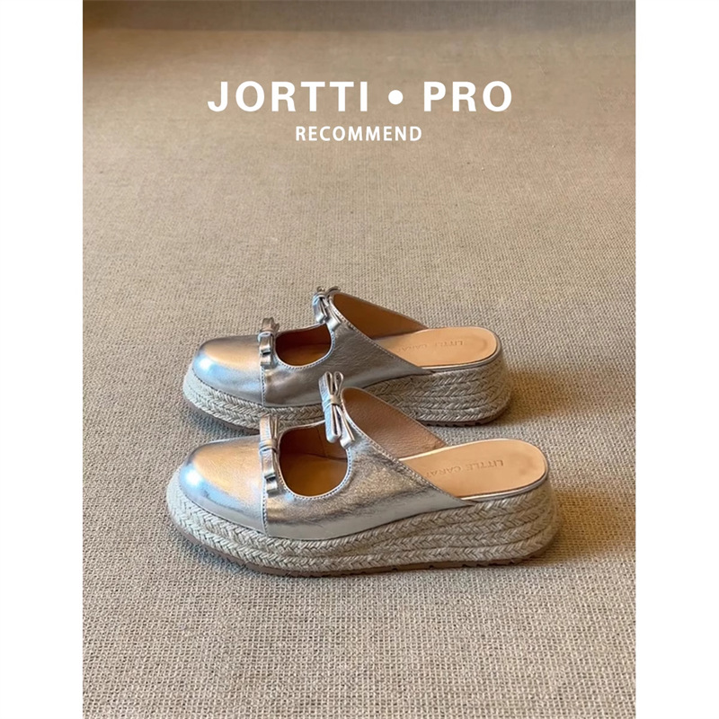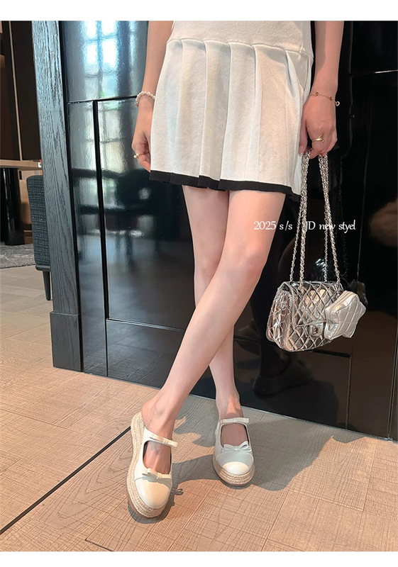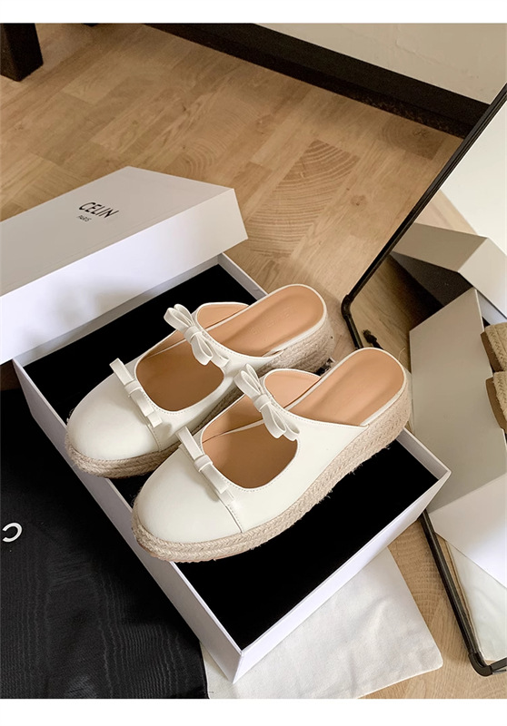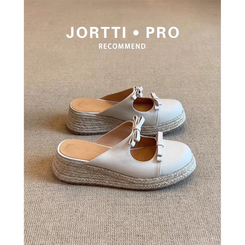 여성용 양가죽 리본 두꺼운 밑창 키높이 발가락 반슬리퍼, 여름 아우터, 캐주얼하고 활용도가 높은 펌프스 슬립온 슈즈스토어 가기