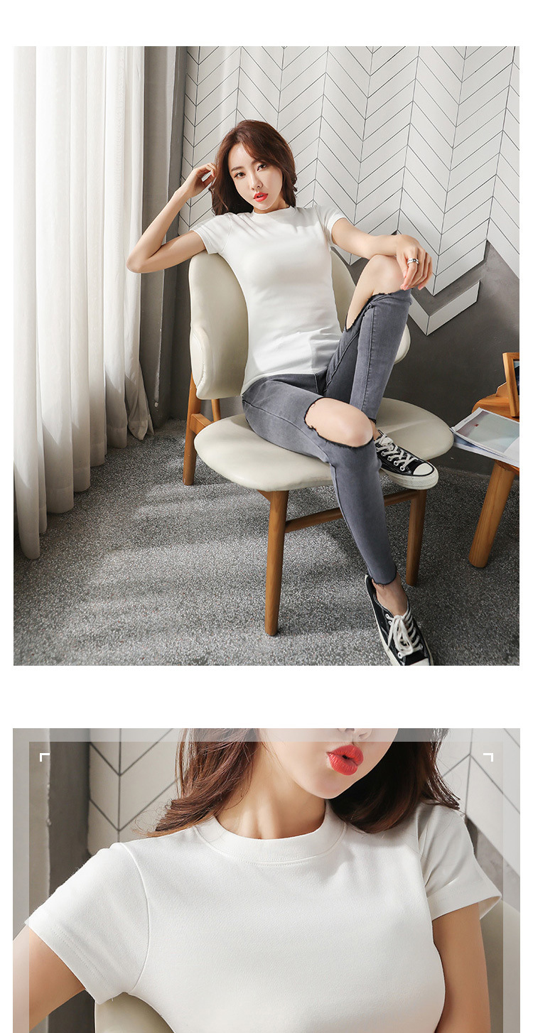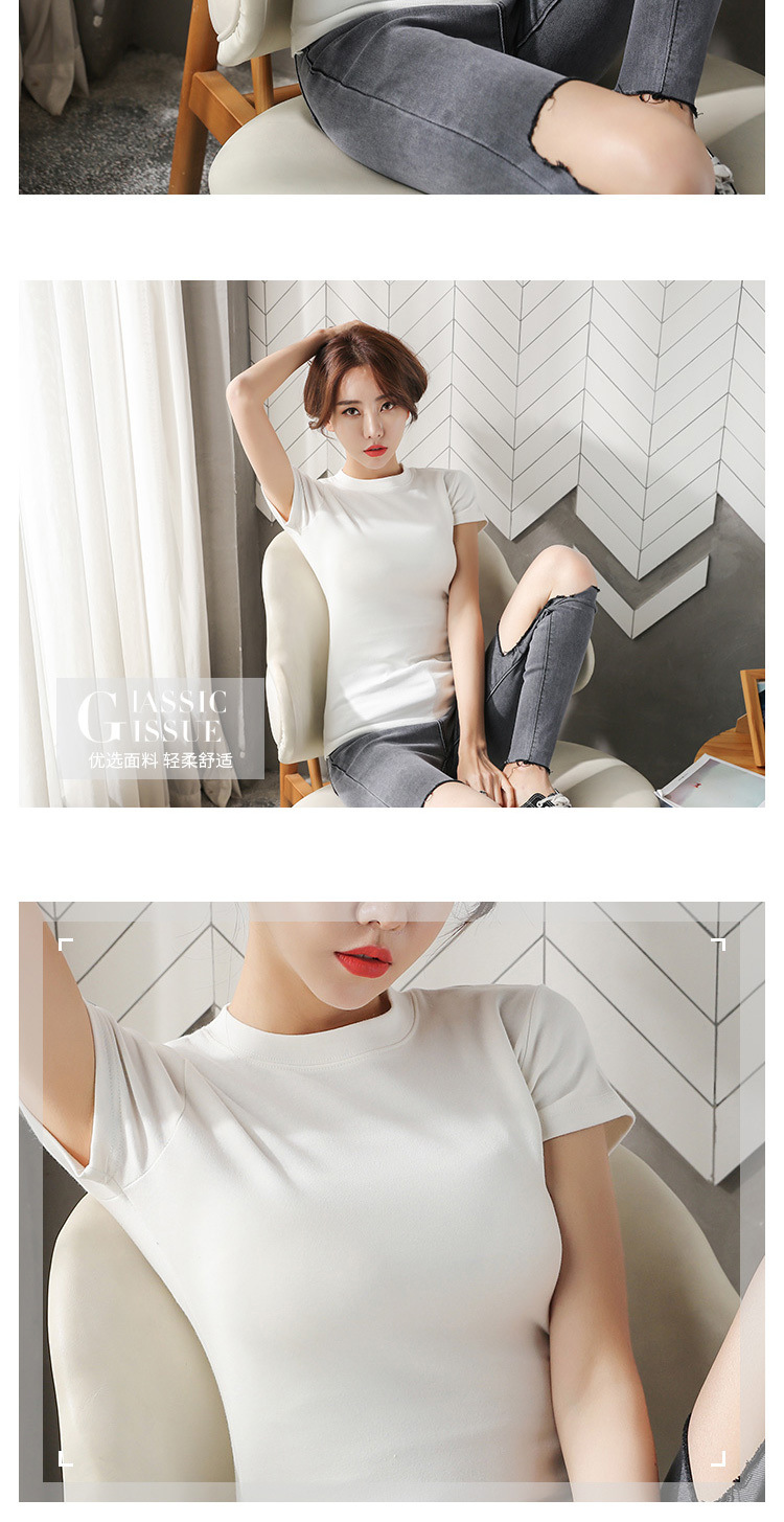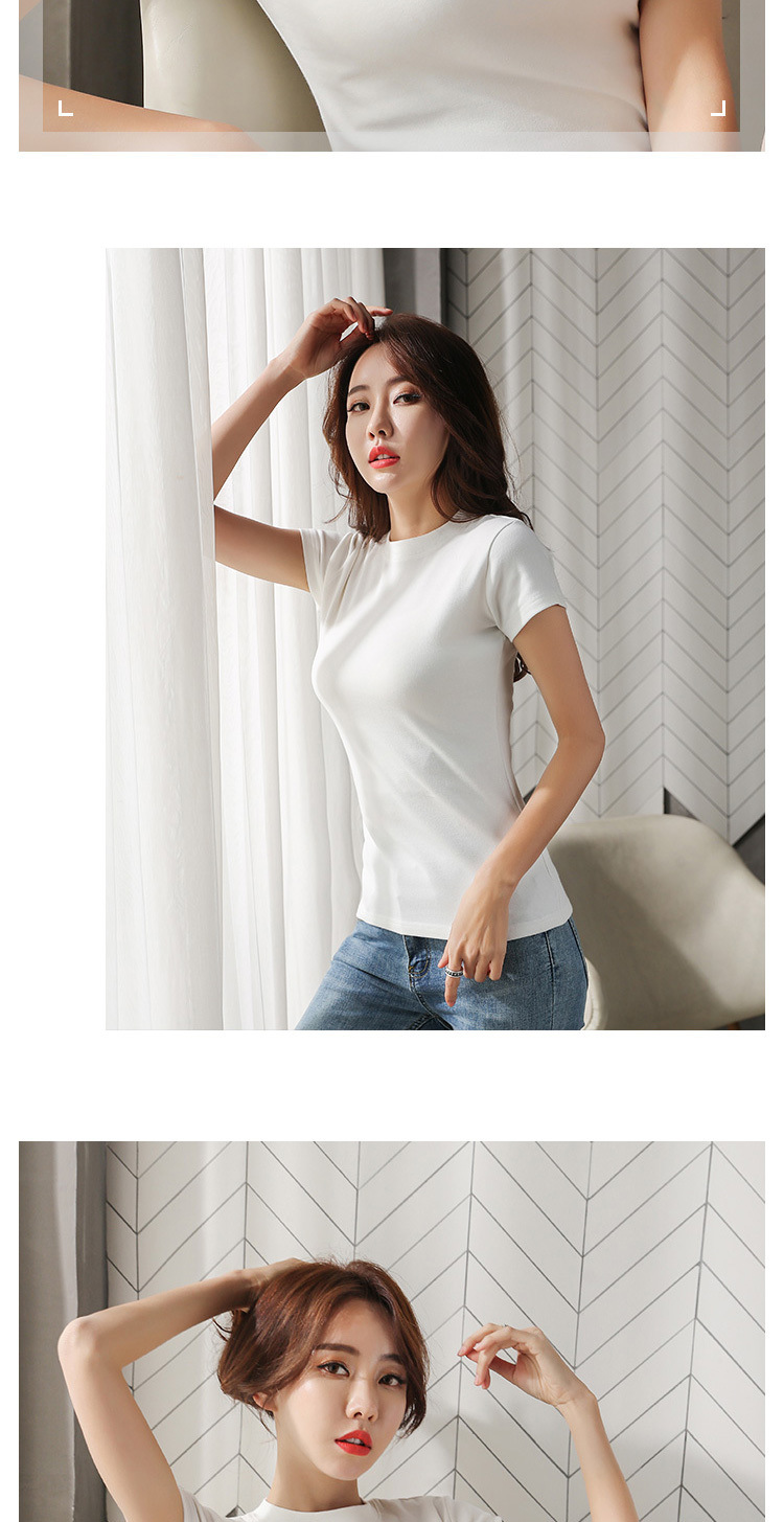 여성을위한 새로운 솔리드 컬러 반팔 티셔츠 한국 스타일 슬림 피트 셔츠 도매 솔리드 컬러 여름 스키니 셔츠 여성스토어 가기