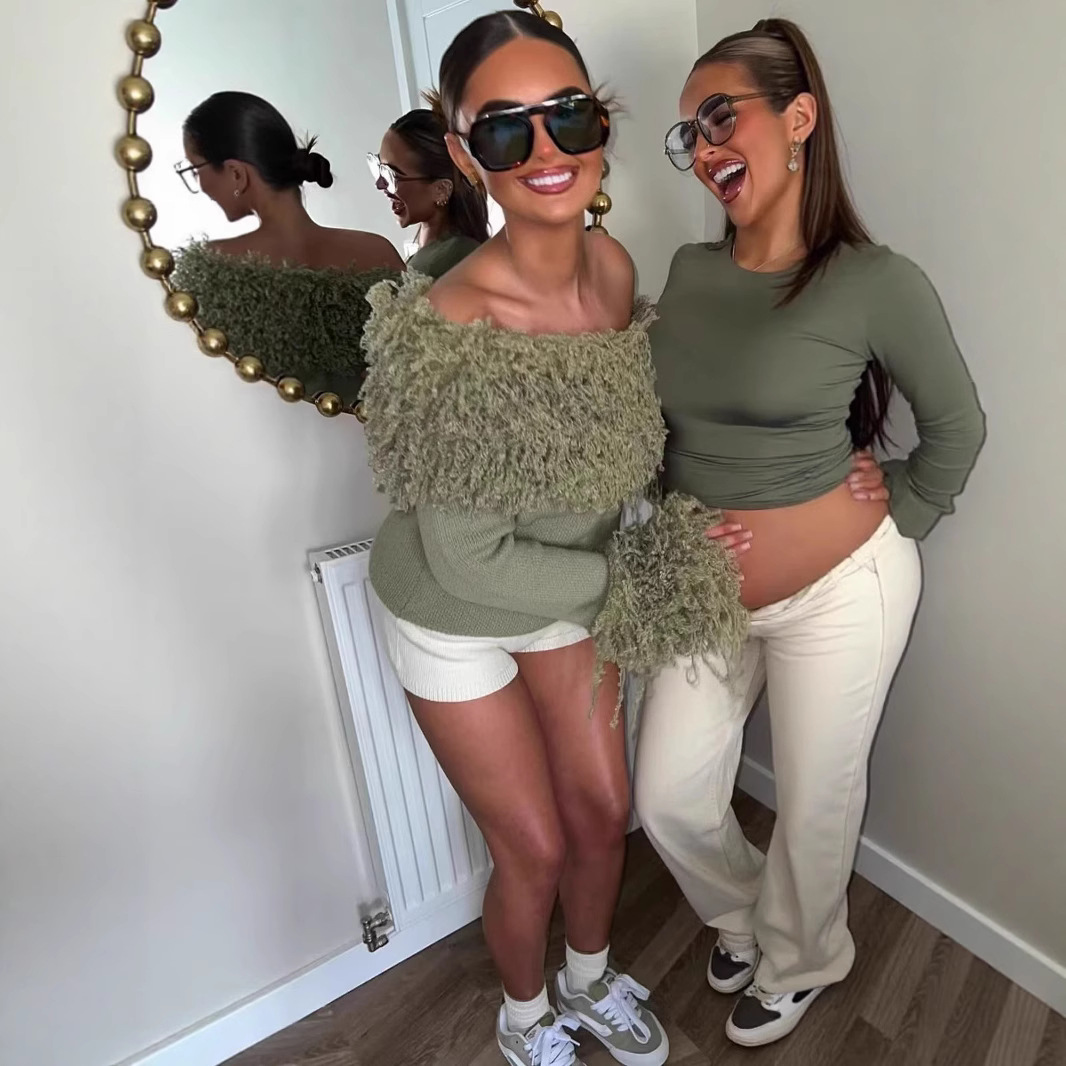 겨울 신상 유럽과 미국 의류 프랑스 패션 디자인 비스듬한 어깨 칼라 질감 태슬 풀오버 스웨터스토어 가기