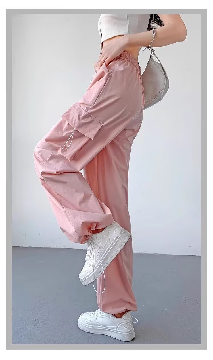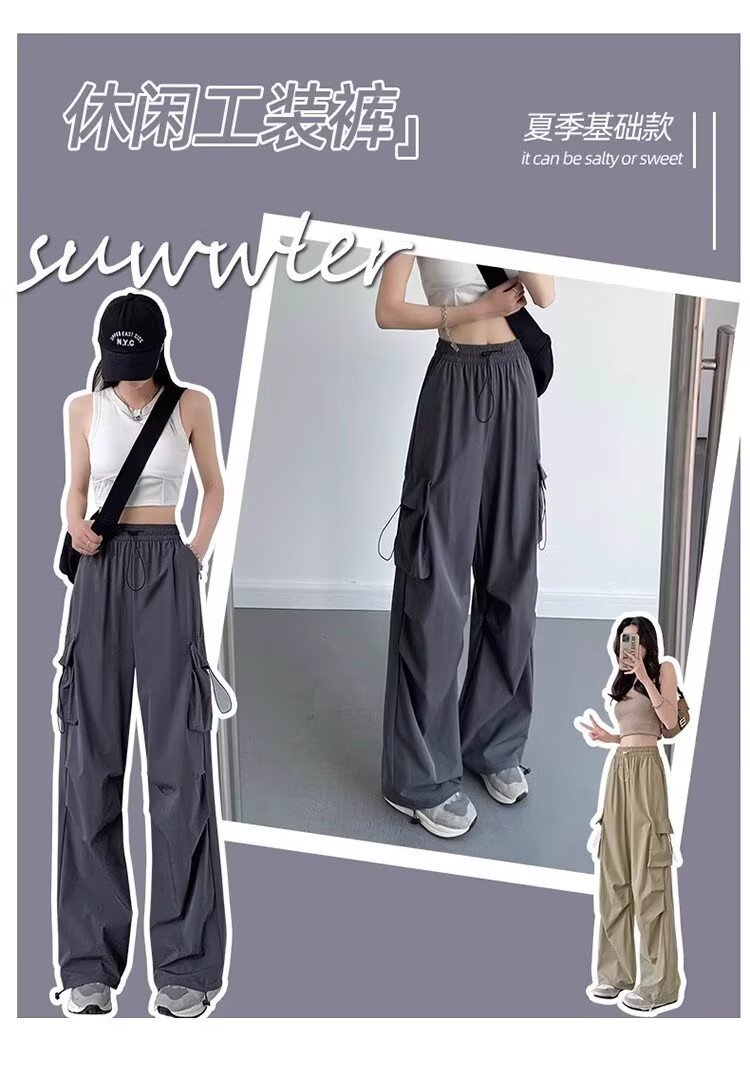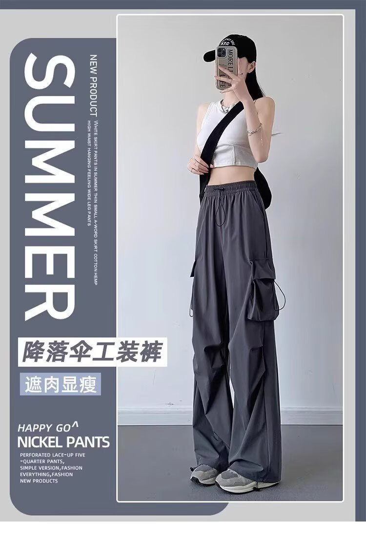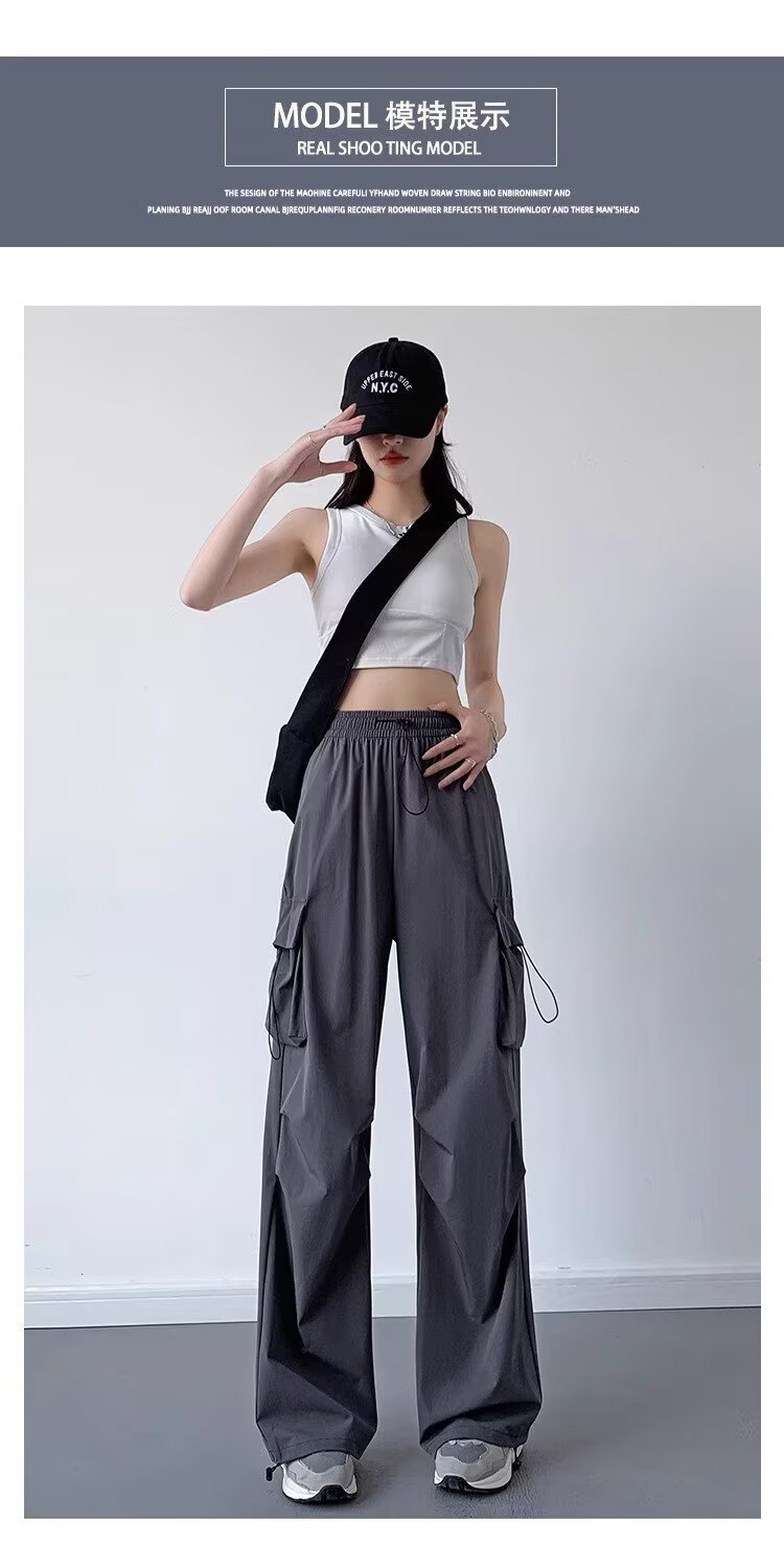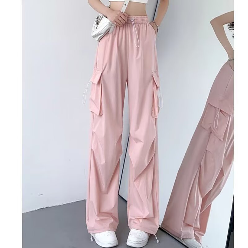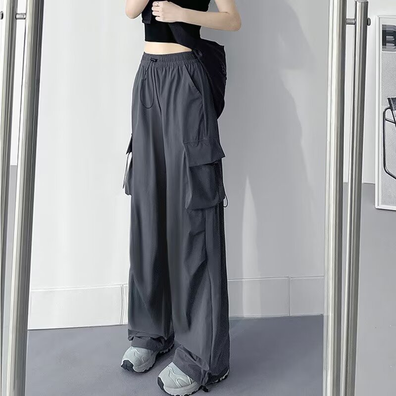 여성을위한 낙하산 공병 바지 여름 얇은 2025 새로운 야외 Drawstring 충전 아이스 실크 빠른 건조 스포츠 바지 도매
