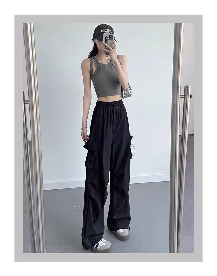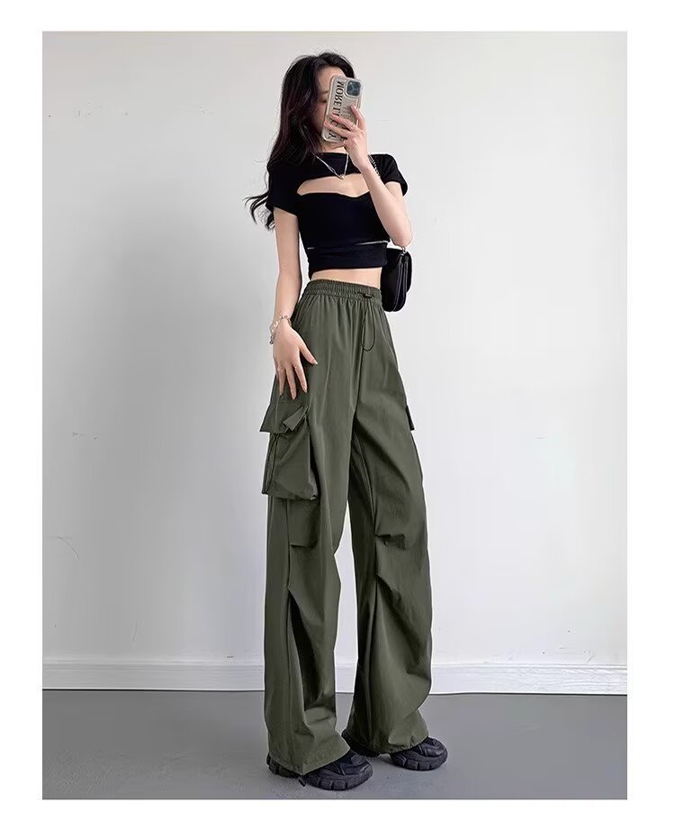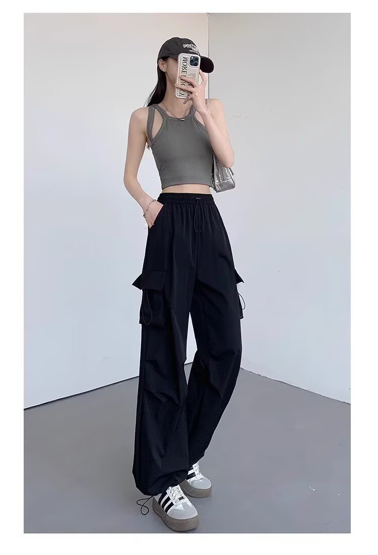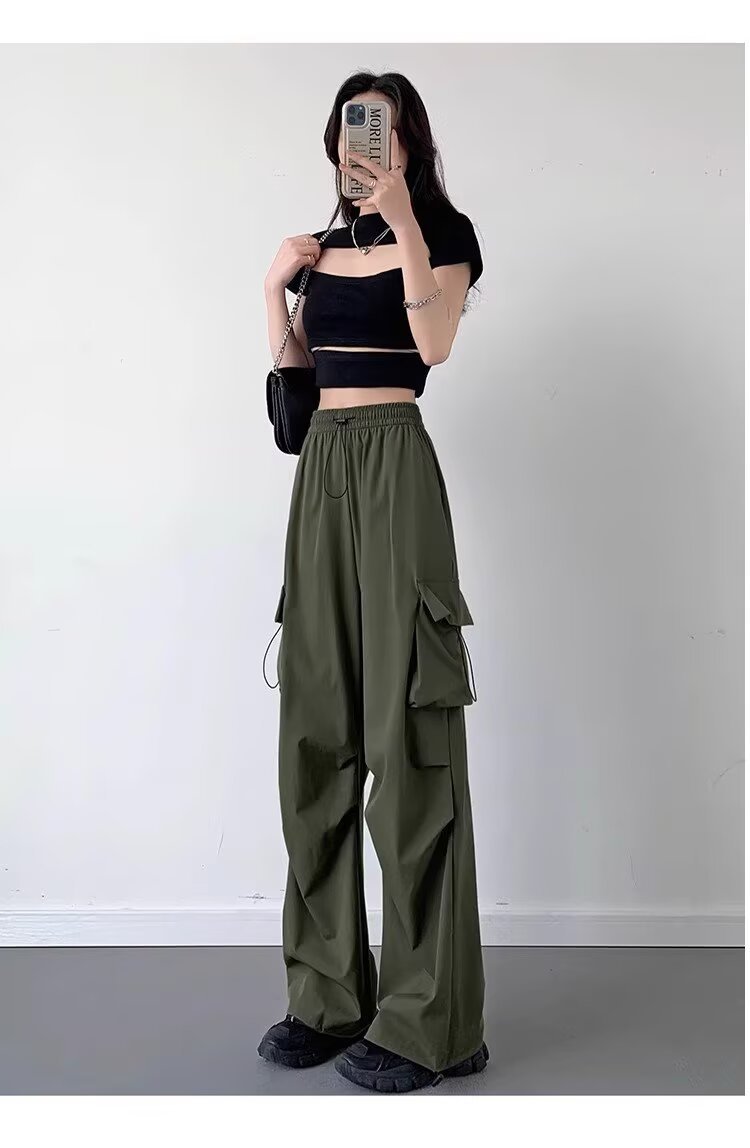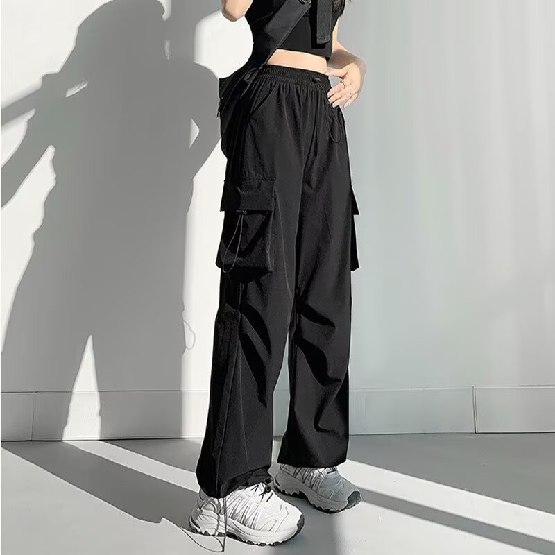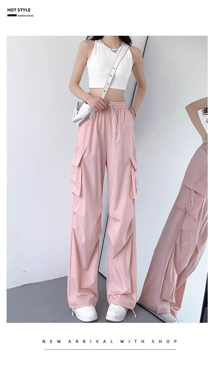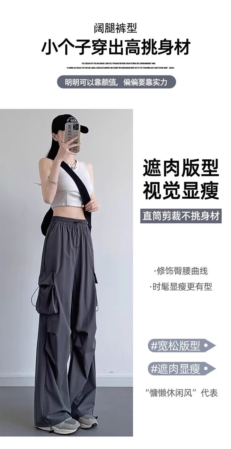 여성을위한 낙하산 공병 바지 여름 얇은 2025 새로운 야외 Drawstring 충전 아이스 실크 빠른 건조 스포츠 바지 도매