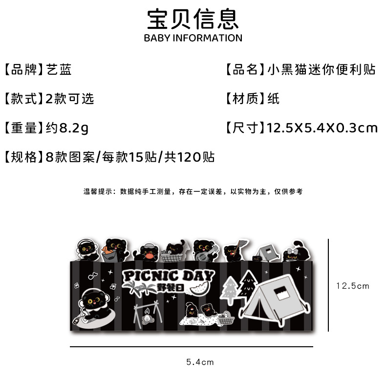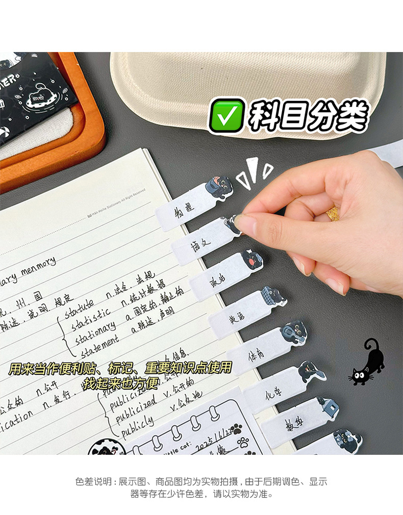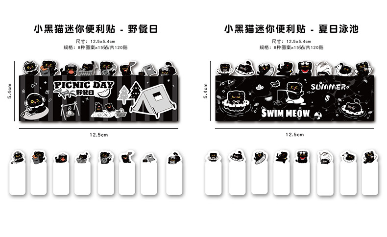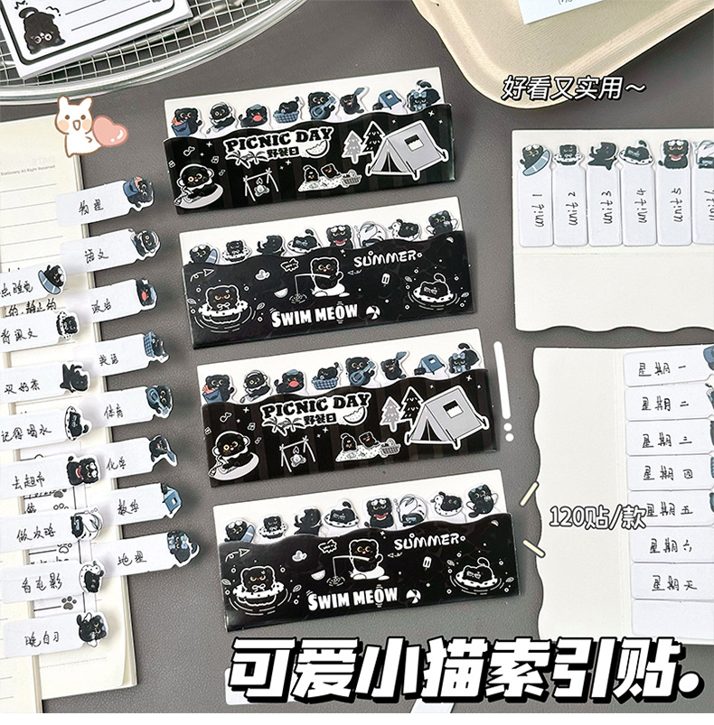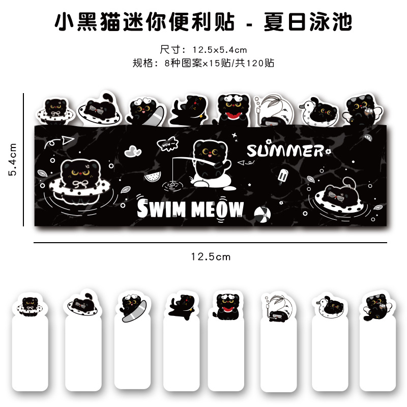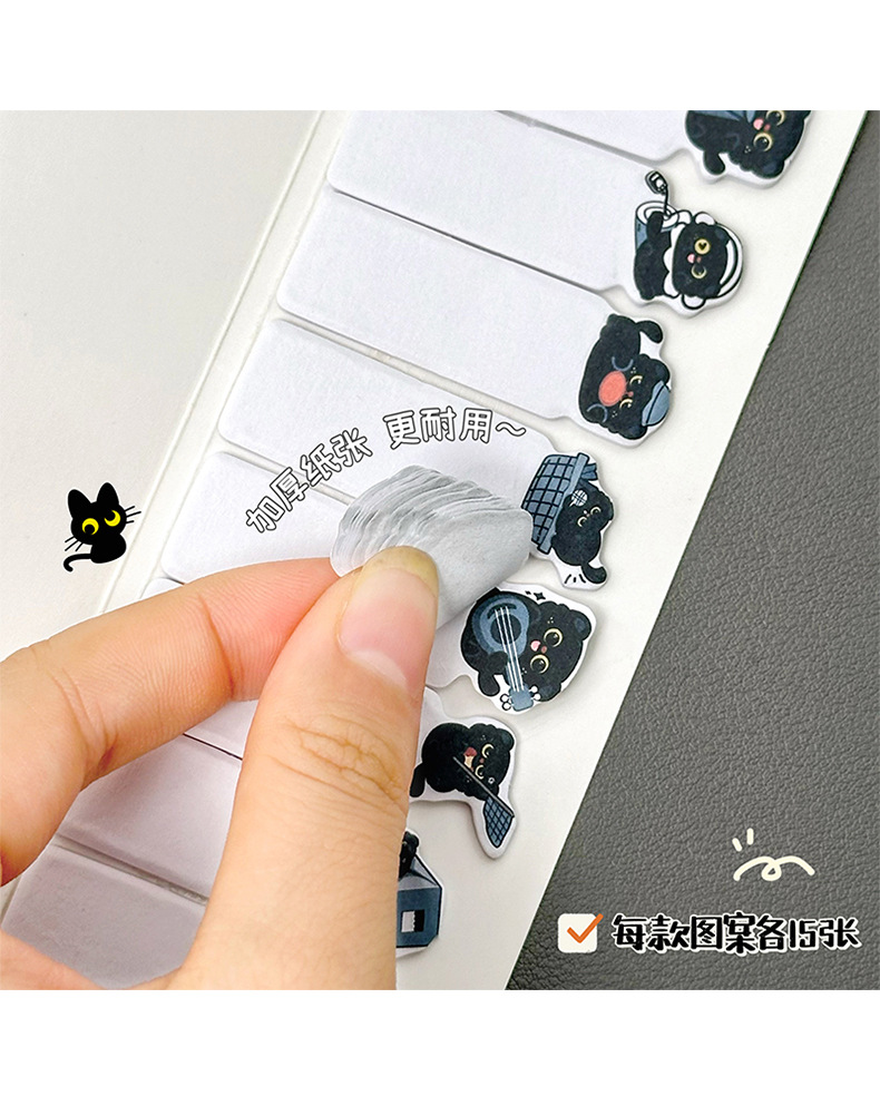 작은 검은 고양이 스티커 메모 창의적인 검은 고양이가 N번 만에 만든 만화 접착식 색인 메시지 용지