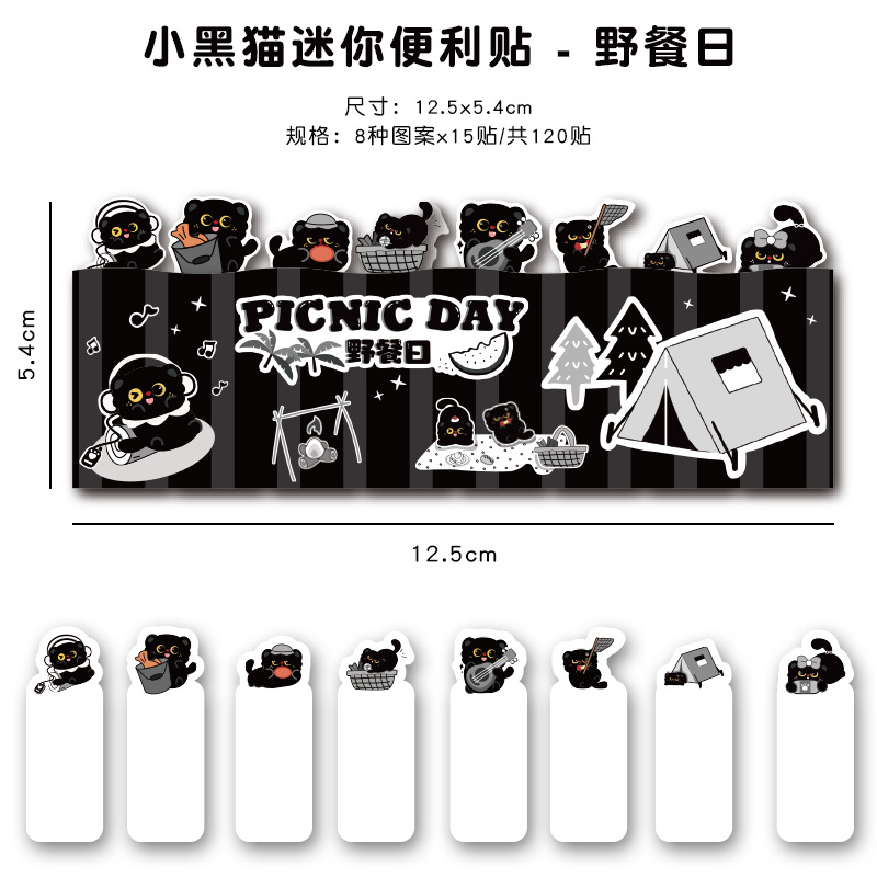 작은 검은 고양이 스티커 메모 창의적인 검은 고양이가 N번 만에 만든 만화 접착식 색인 메시지 용지스토어 가기