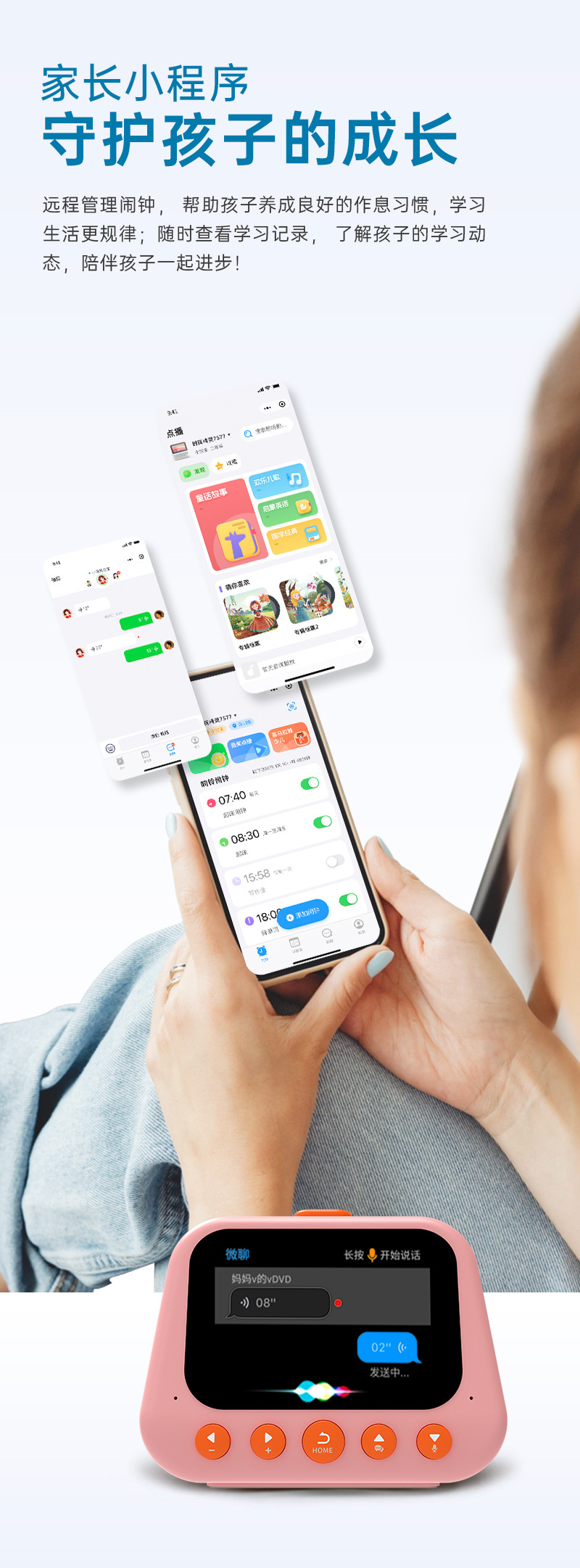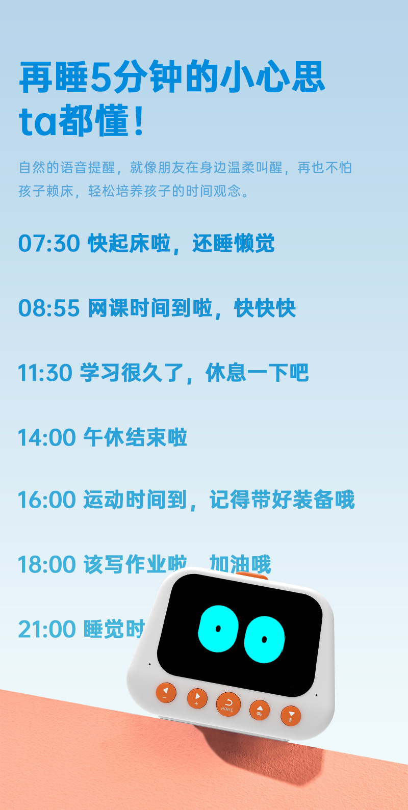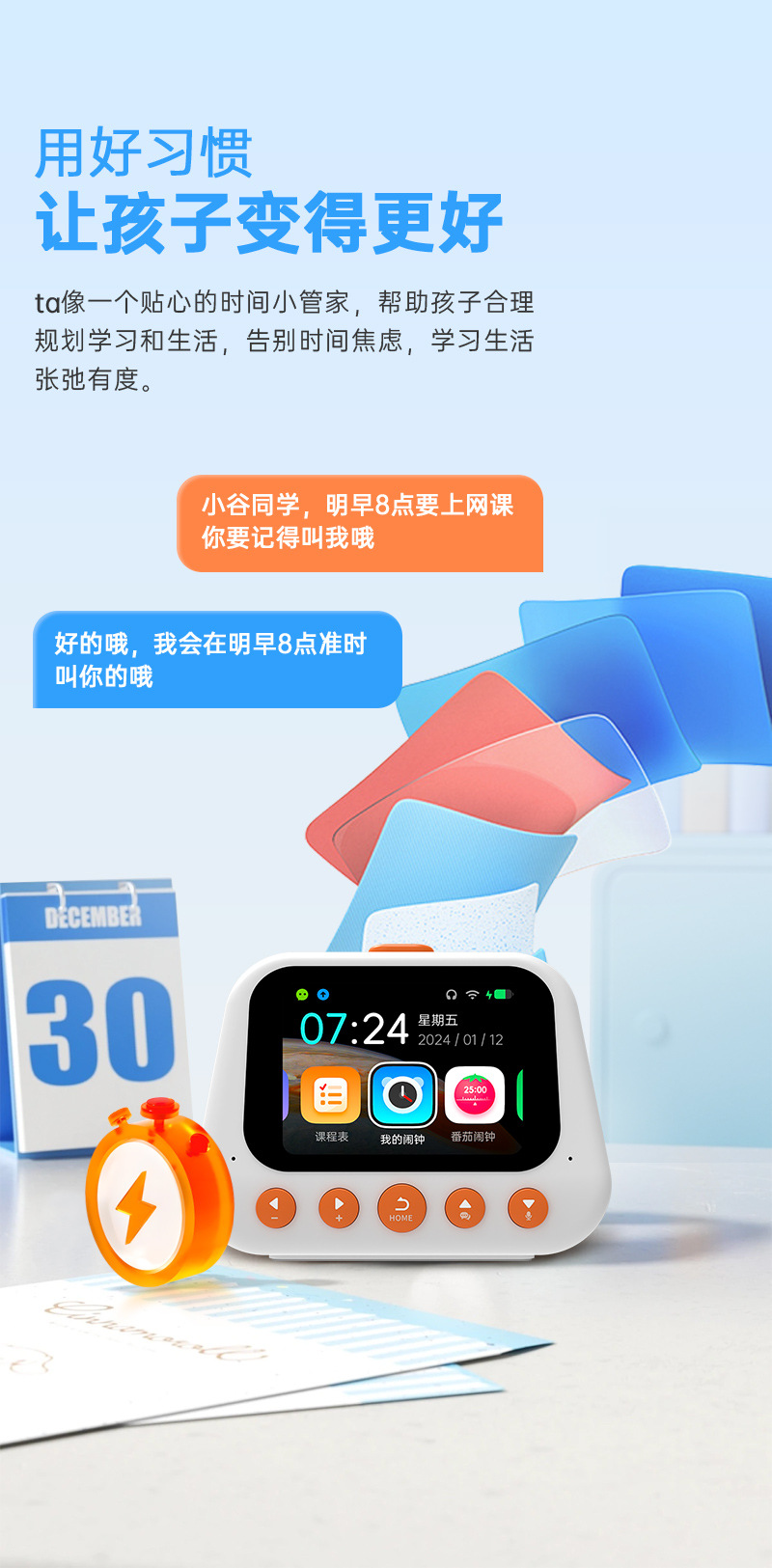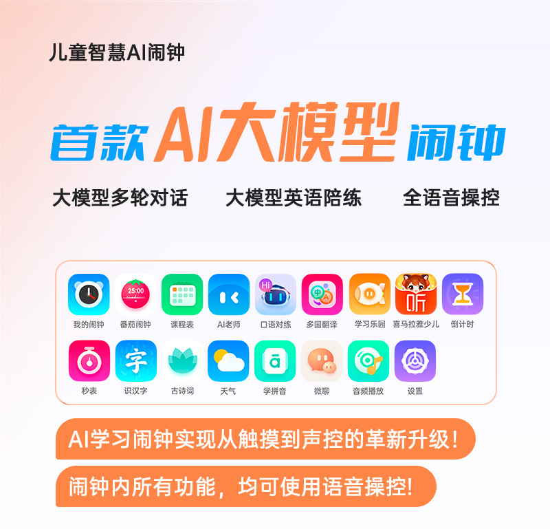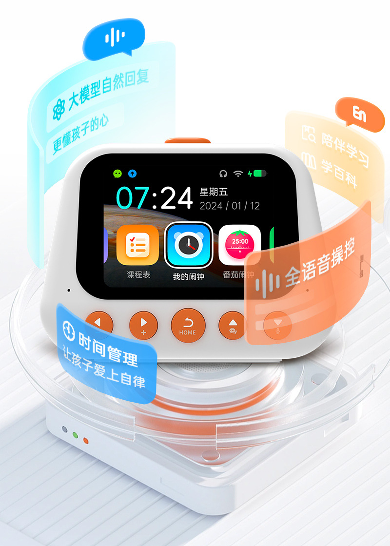 AI 지능형 학습 기계 조기 교육 특수 다기능 알람 시계 스마트 알림 타이머 야간 조명이있는 기상 유물
