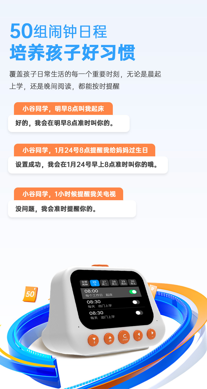 AI 지능형 학습 기계 조기 교육 특수 다기능 알람 시계 스마트 알림 타이머 야간 조명이있는 기상 유물스토어 가기