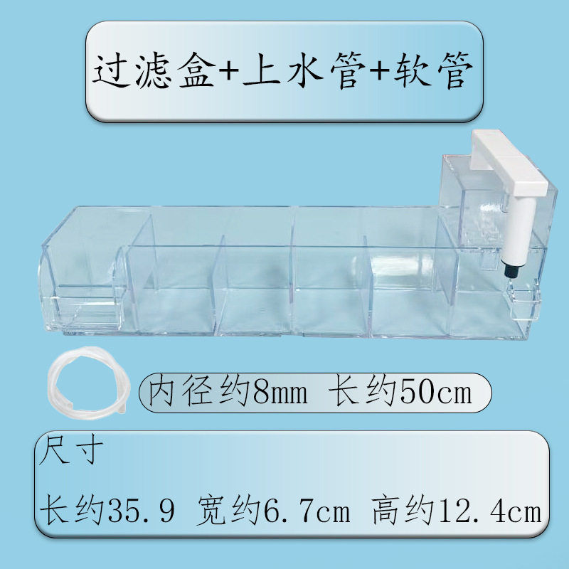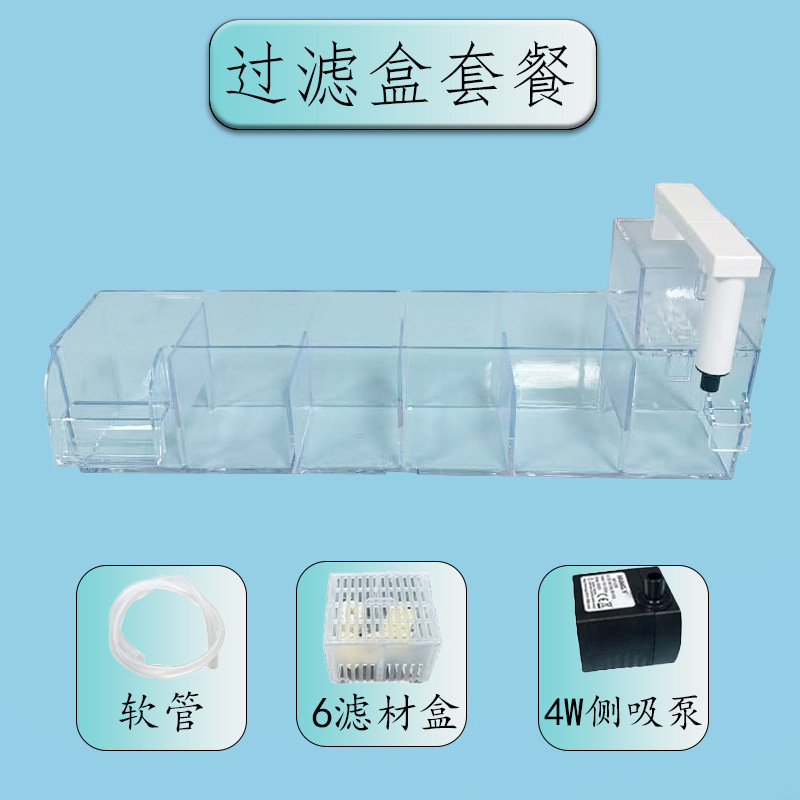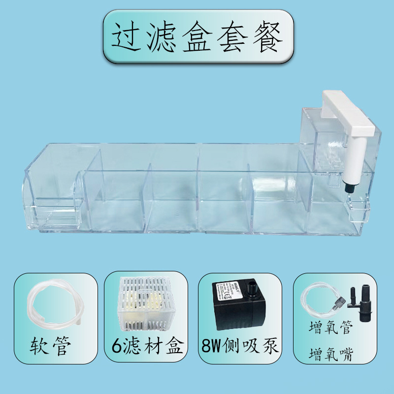 • 투명한 6개의 창고 필터 상자 + 호스 + 6개의 필터 상자 + 8w 측면 흡입 펌프 세트