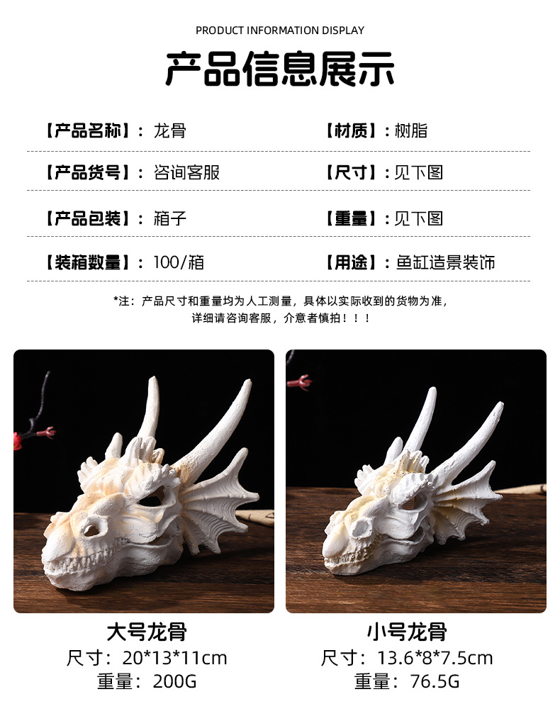 수조 시뮬레이션 드래곤 뼈 해골 조경 수지 장식품 수족관 장식 두개골 모델 물고기와 새우 피난처 집 장식품