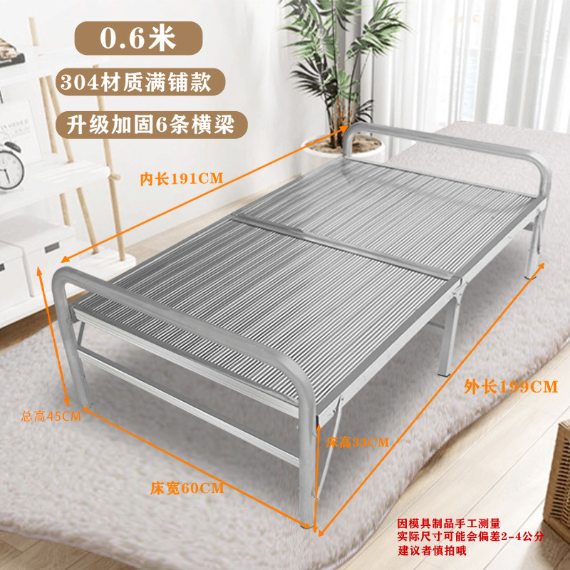 304 스테인레스 스틸 접이식 침대 강화 암호화 원활한 휴대용 야외 홈 점심 시간 싱글 더블 침대 공급 공장스토어 가기