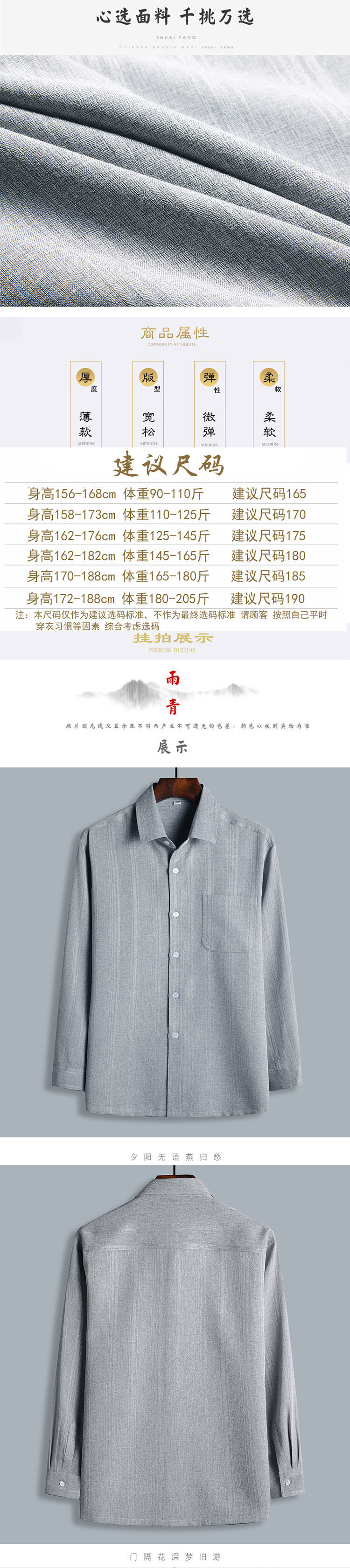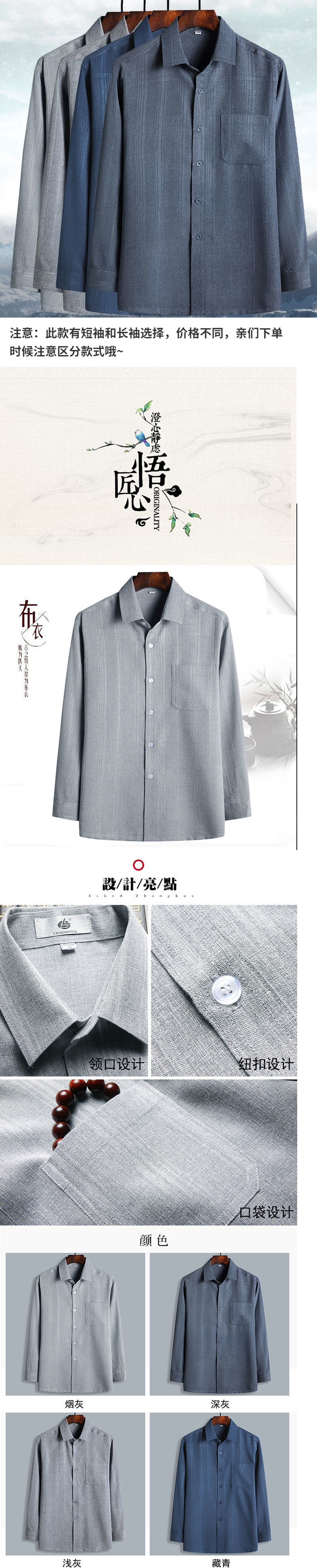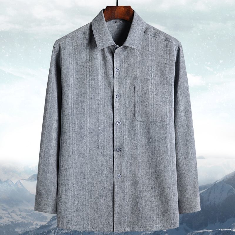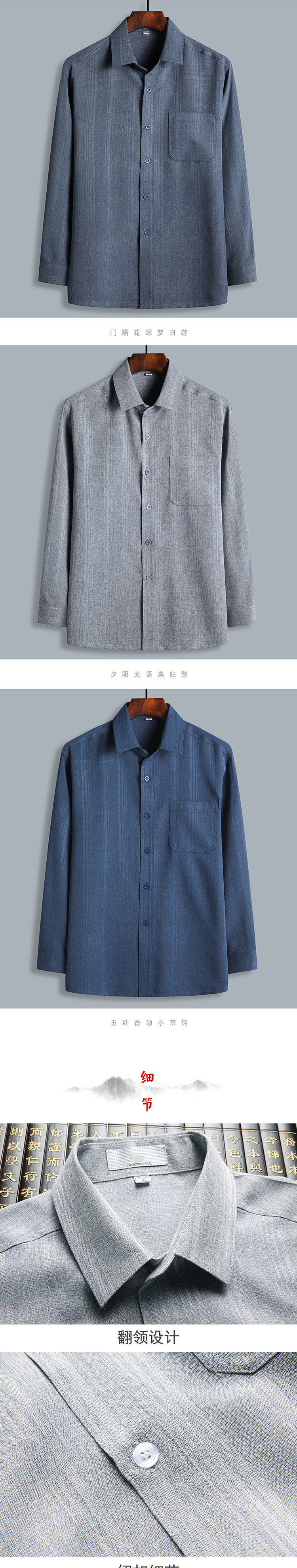 중년 및 노인 남성 긴팔 셔츠 봄 여름 얇은 느슨한 면 및 린넨 셔츠 노인 할아버지 플러스 사이즈 아빠 착용