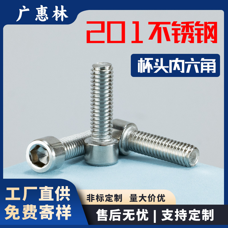 HM201 스테인레스 스틸 컵 헤드 육각 소켓 나사, 원통형 헤드 육각 소켓 나사 및 볼트 패스너 도매스토어 가기