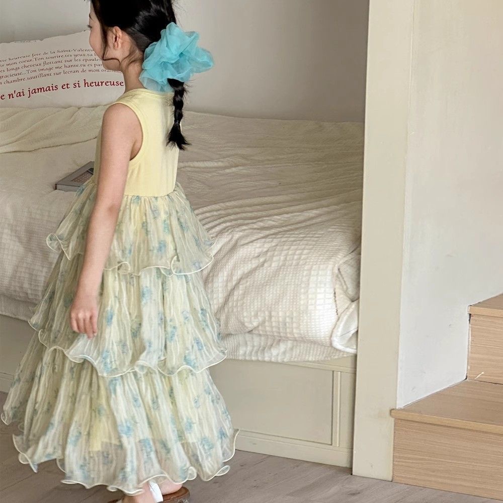여자 드레스 여름 드레스 2025 새로운 아동 의류 어린이 여름 스커트 유행 소녀 공주 꽃 케이크 드레스