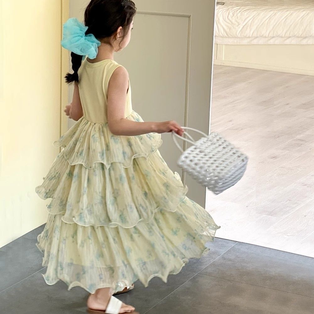 여자 드레스 여름 드레스 2025 새로운 아동 의류 어린이 여름 스커트 유행 소녀 공주 꽃 케이크 드레스스토어 가기
