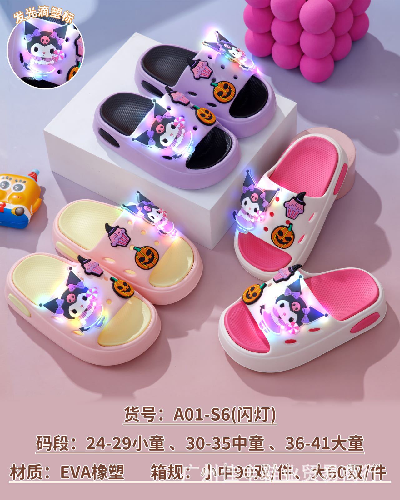 2025 여름 새로운 어린이 슬리퍼 소녀 EVA 만화 빛나는 귀여운 아기 미끄럼 방지 2 색 고무 및 플라스틱 슬리퍼스토어 가기