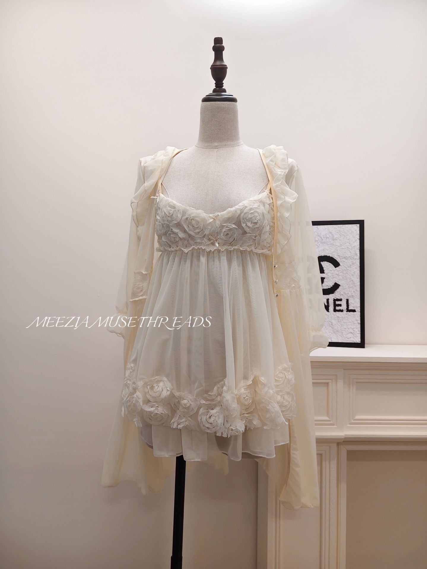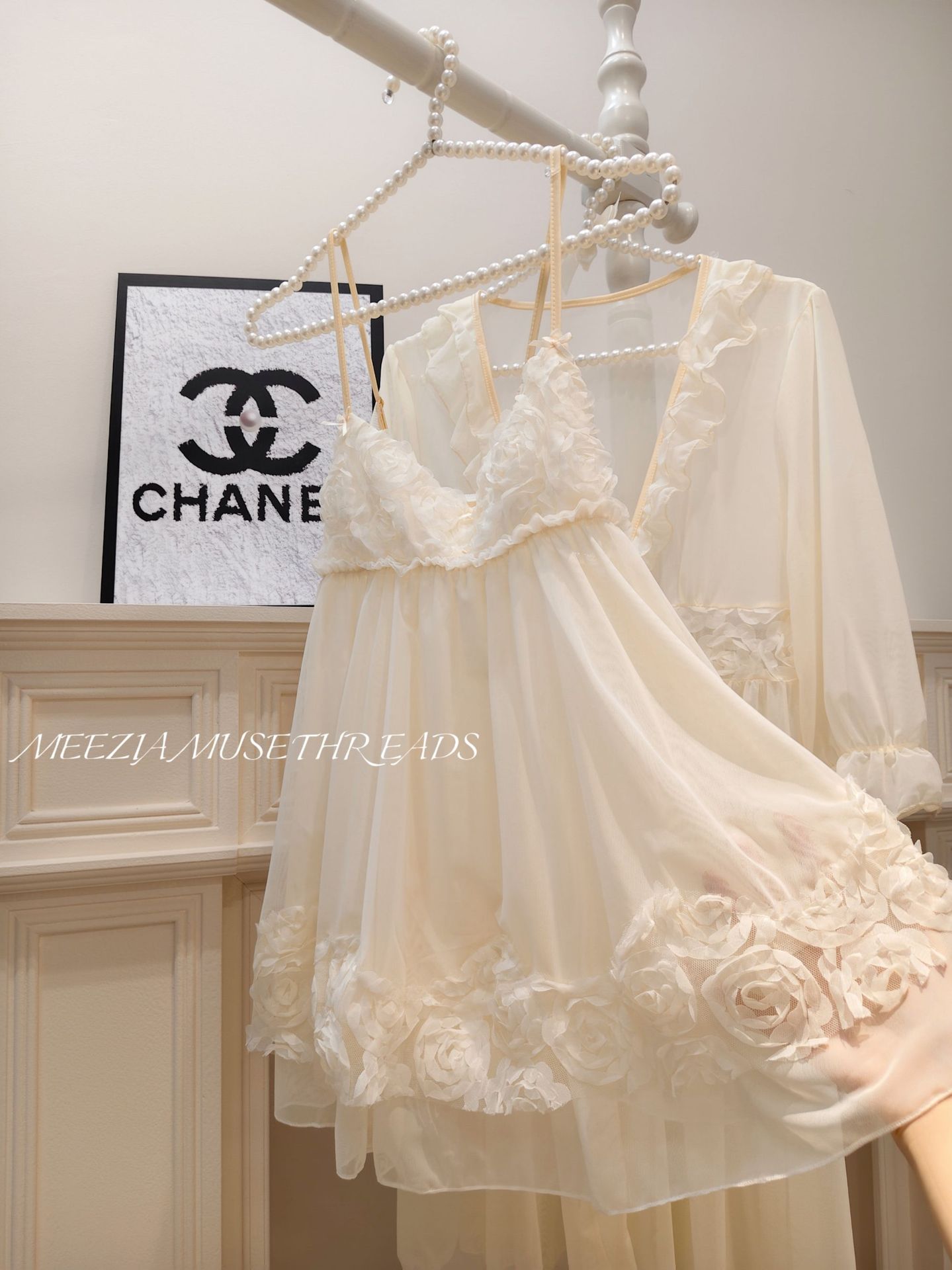 여름 새로운 데이트 섹시한 잠옷 달콤한 순수한 욕망 로즈 메쉬 귀여운 공주 스타일 서스펜더 홈웨어 세트