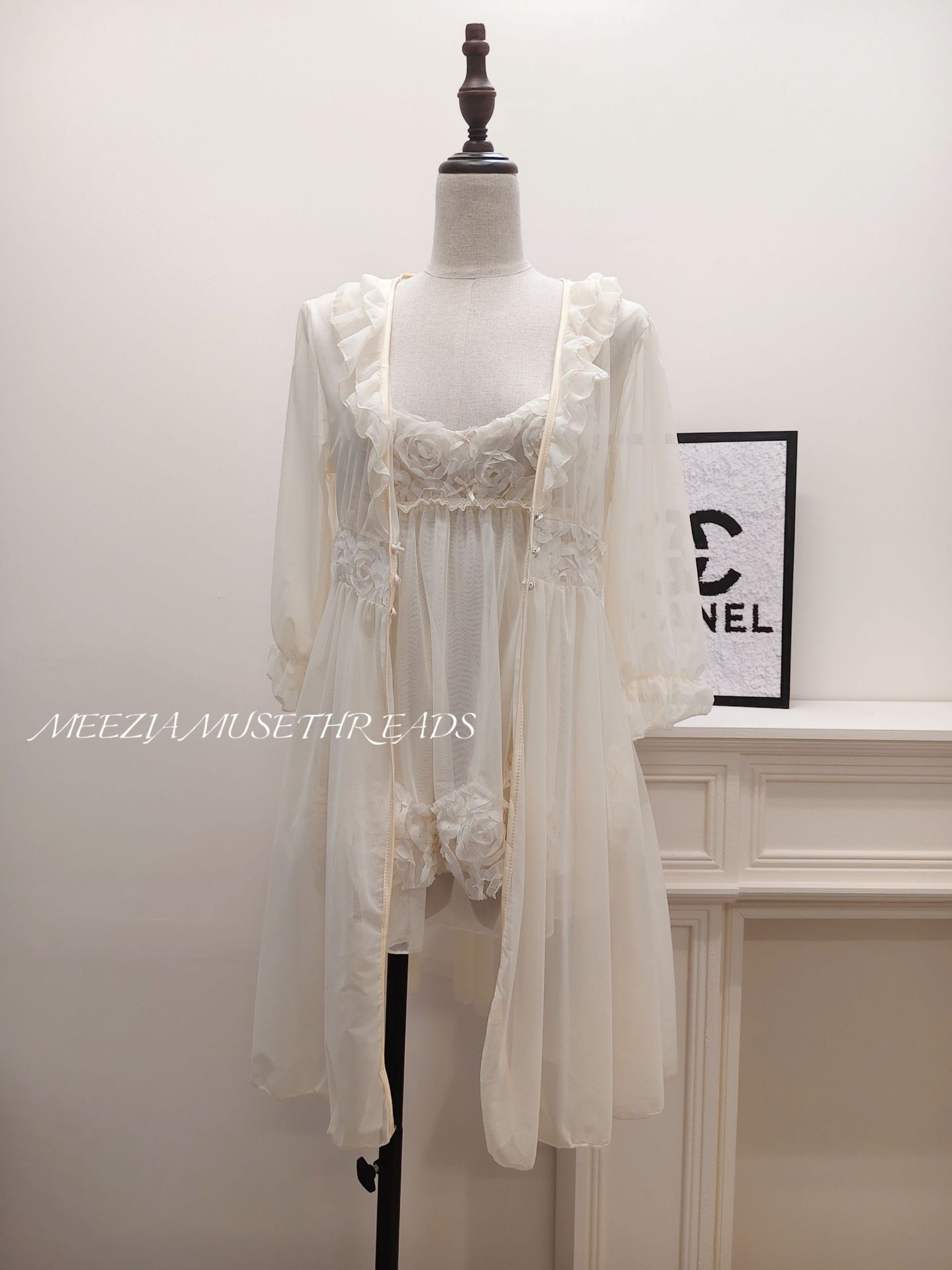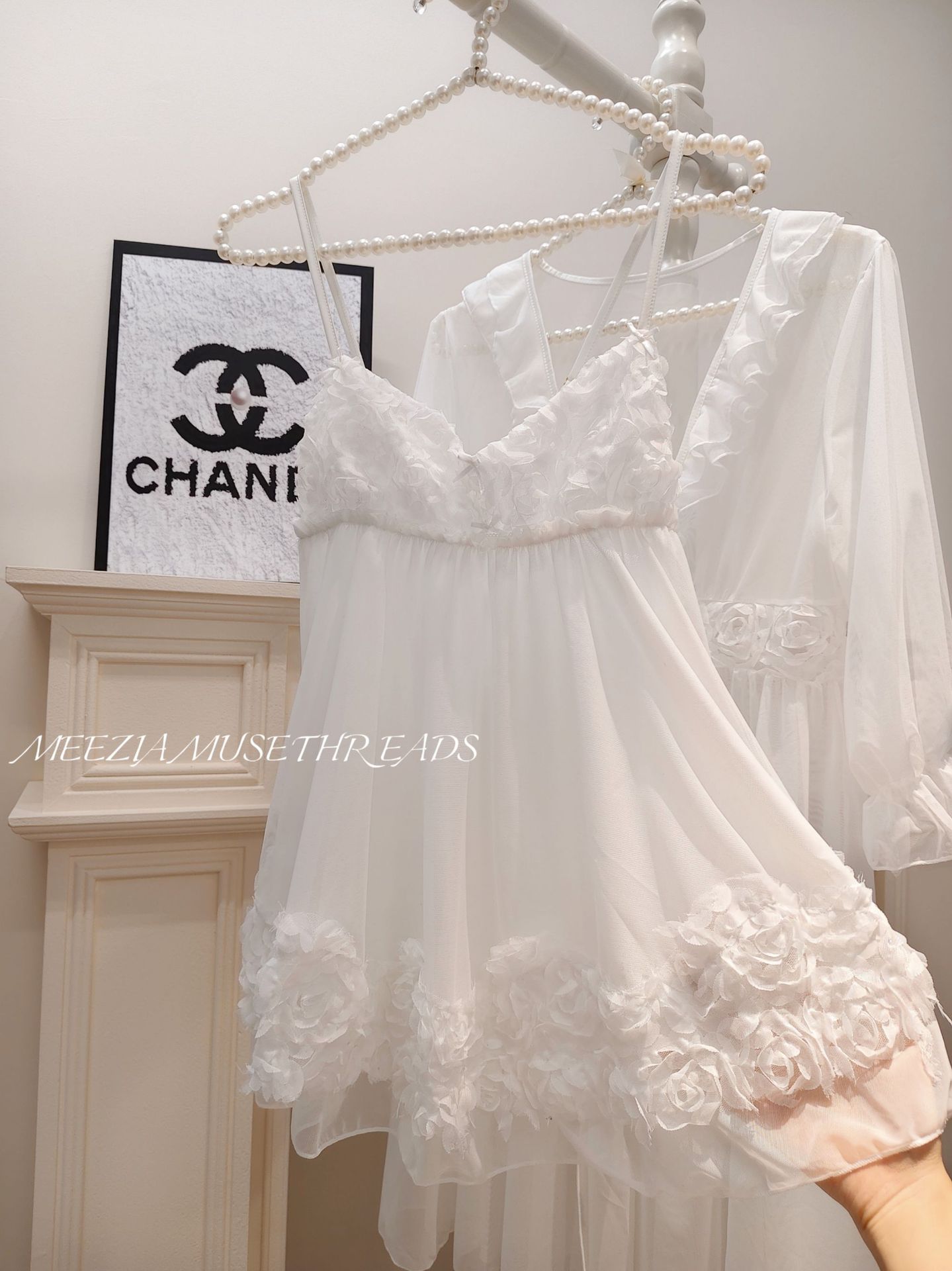 • 화이트(스트랩 나이트가운+끈팬티+가운)