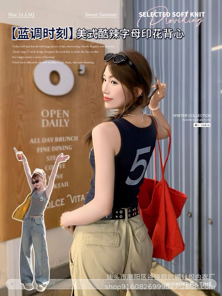 여름 미국 복고풍 멋진 멋진 멜빵 스포츠 조끼 가슴 패드 없음 슬림 프린트 민소매 탑 여성용스토어 가기