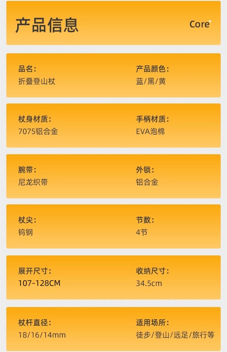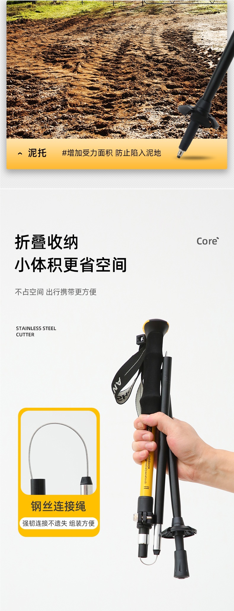 • 접이식 외부 잠금 장치 [7075 알루미늄 합금/텅스텐 강철 지팡이 팁/접이식 34cm 전용] 아름다운 노란색