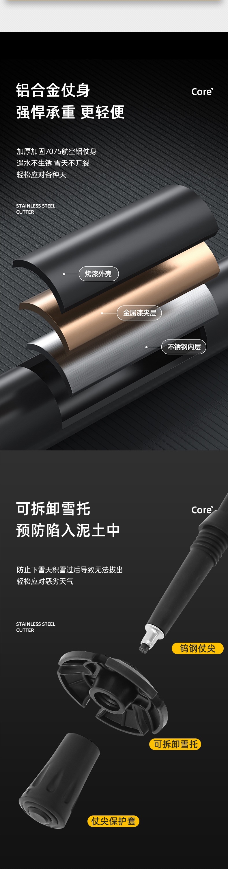 • 텔레스코픽 외부 잠금 장치 [7075 알루미늄 합금/EVA 폼 그립] 야오예 블랙
