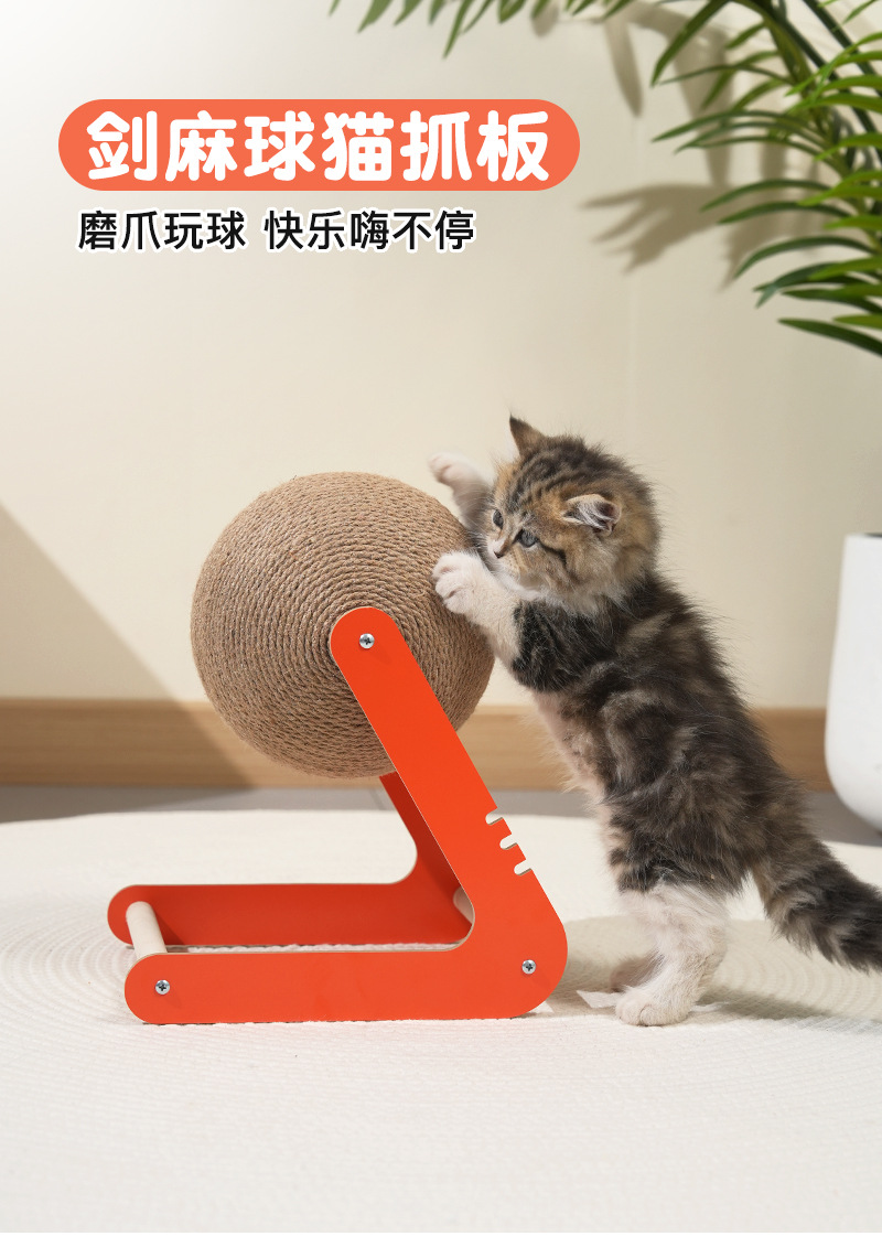 오렌지 회색 고양이 스크래치 볼 수직 고양이 장난감 자기 자극 및 지루함 완화 고양이 스크래치 보드 일체형 대마 로프 작은 고양이 클라이밍 프레임 애완 동물 용품스토어 가기