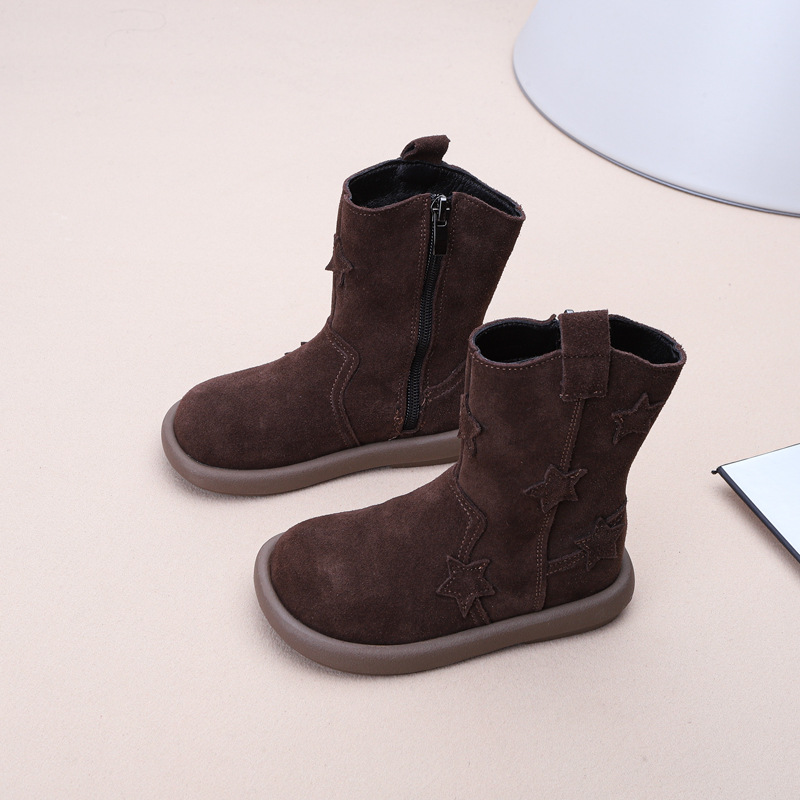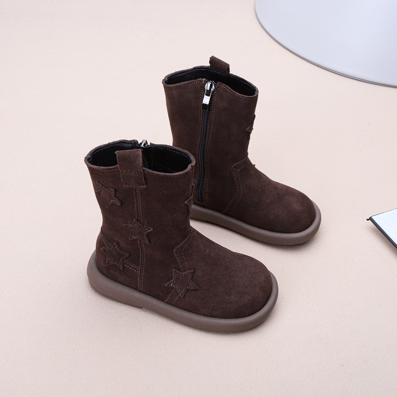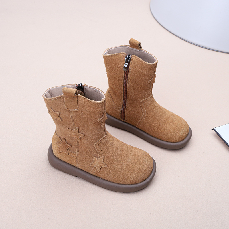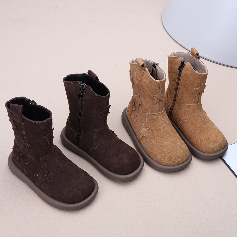 여자 가죽 부츠 2025 가을 새로운 가을 새로운 중간 튜브 어린이 부츠 여자 패션 다목적 캐주얼 마틴 부츠