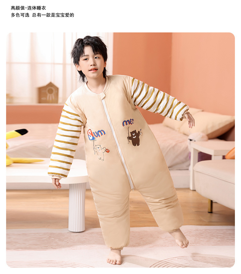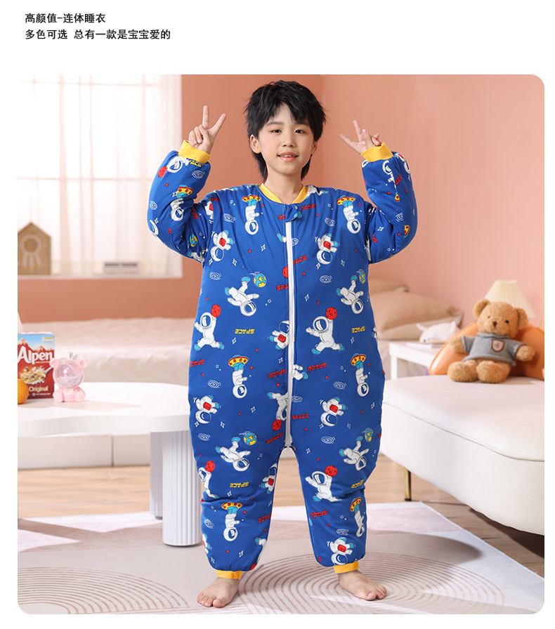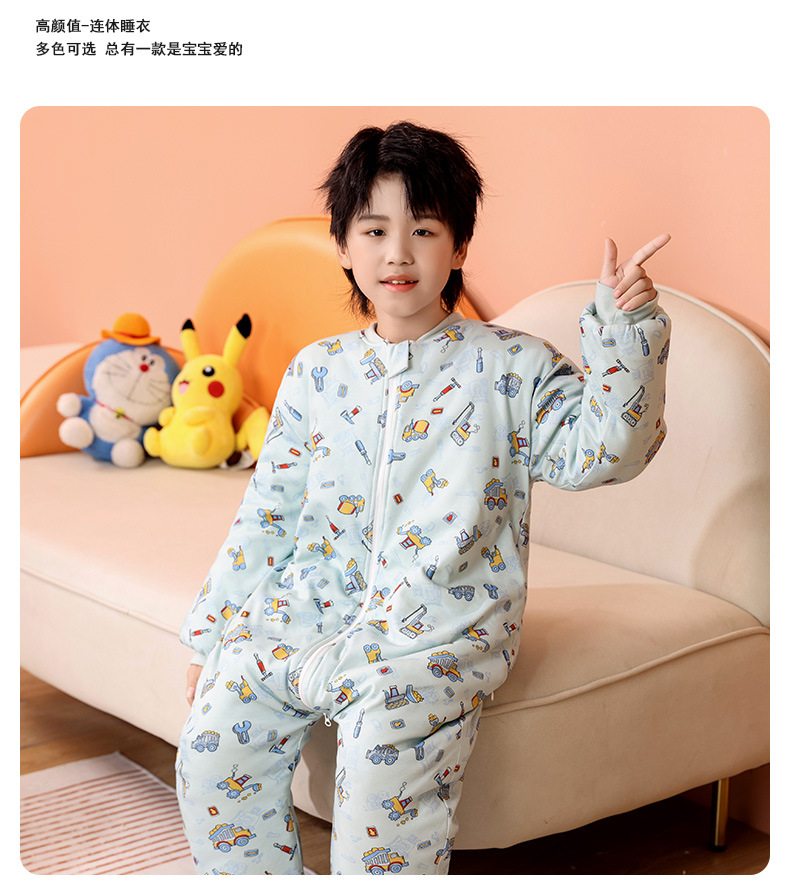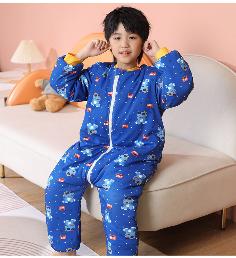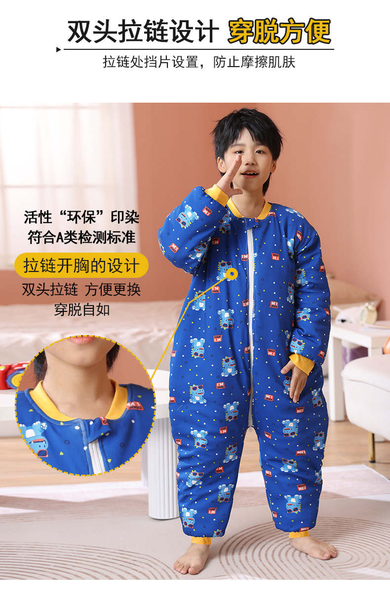 어린이 원피스 잠옷 겨울 아기 가을, 겨울 두꺼운 면화 중대형 어린이 소년과 소녀 순면 안티 킥 침낭