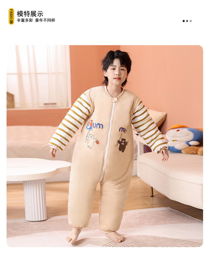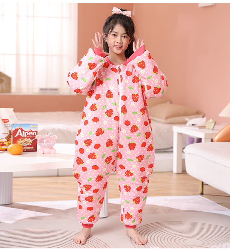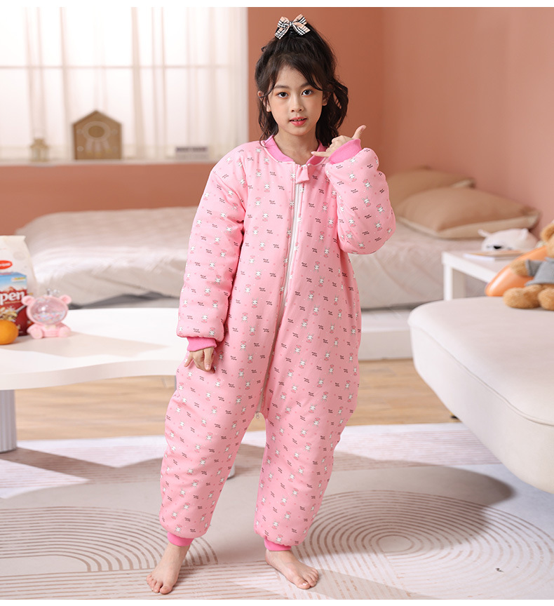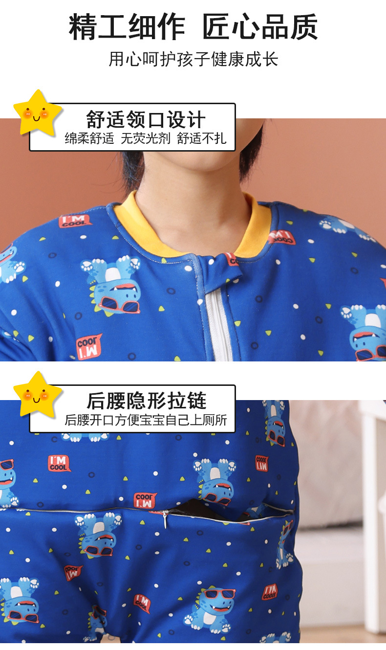 어린이 원피스 잠옷 겨울 아기 가을, 겨울 두꺼운 면화 중대형 어린이 소년과 소녀 순면 안티 킥 침낭