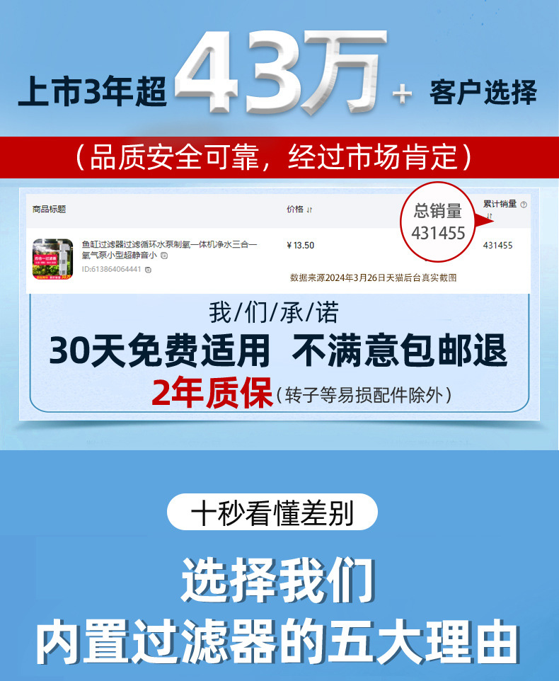초저소음 정수 산소수중펌프 산소펌프 3-in-1 소형 일체형 어항필터 순환필터 소형